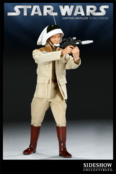 Authentic likeness of Captain Raymus Antilles, Shirt, Jacket, Pants, Boots, Detailed belt , Helmet with antenna, Rebel Trooper blaster, Interchangeable hands