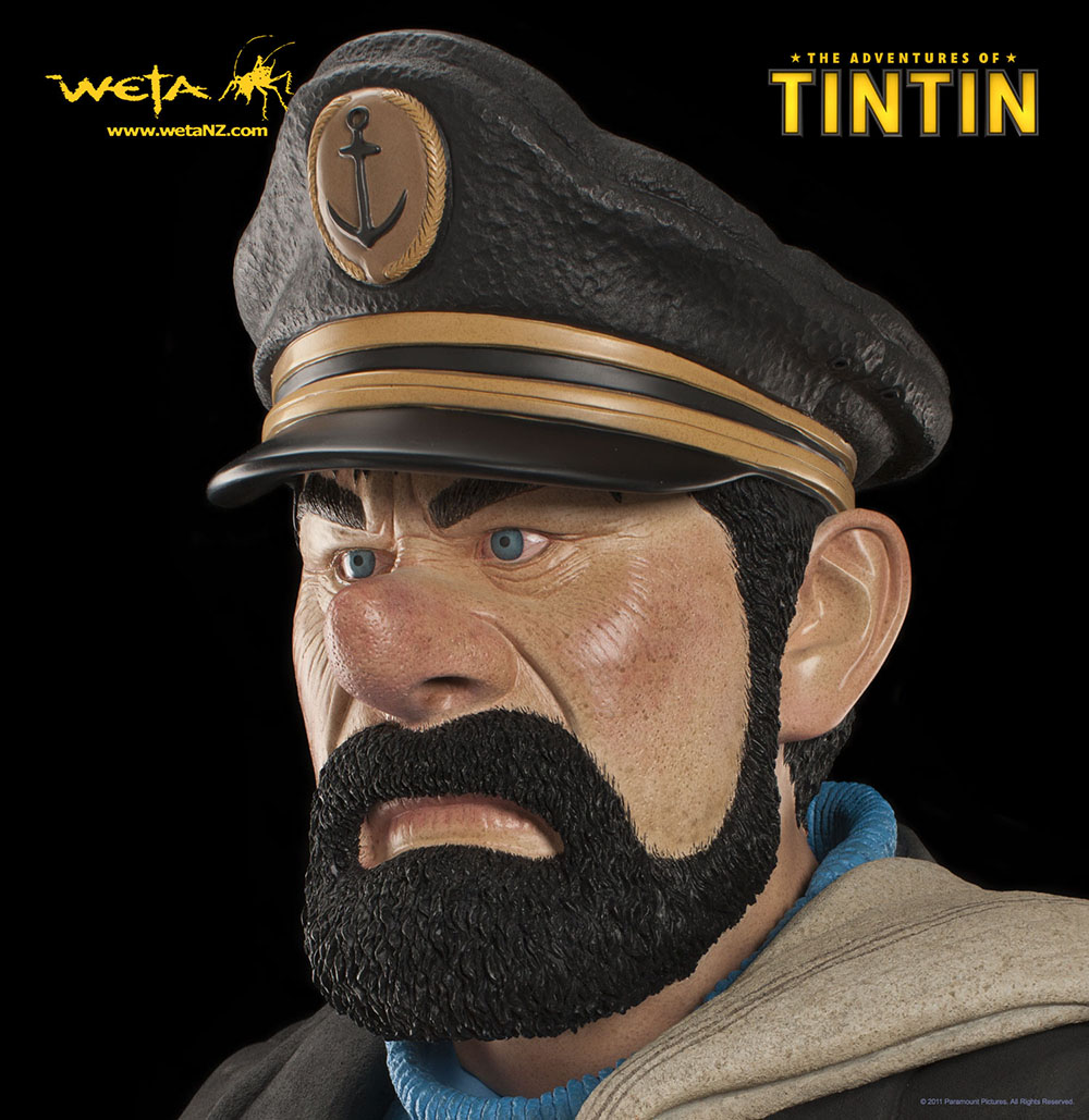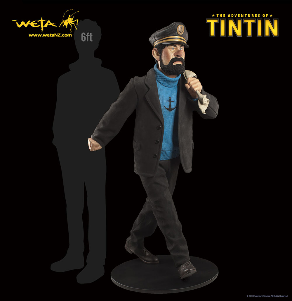The Life Size Weta statue of Haddock is a 1.8mtr fibreglass statue created from the actual digital model made by Weta Digital for the movie The Adventures of Tintin, and was finished and prepared by the artists at Weta Workshop. Your statue is made to order (limited availability) comes in a strengthened rigid cardboard box and includes a metal display base.