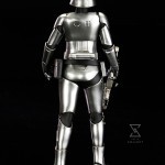 First up is a character who immediately grabbed the attention of the fans in early images, the chrome-armored Captain Phasma! Brought to life by actress Gwendoline Christie, Phasma is a commanding officer in the First Order approximately three decades after the Battle of Endor and the death of Emperor Palpatine. Ready to lead her troops into battle and crush the Rebellion, Captain Phasma looks amazing. Like the Stormtroopers under her command she is clad head to toe in heavy armor but while the standard soldiers wear black and white Phasma is resplendent in dark, reflective chrome armor with black accents. Her look is made even more fearsome with a long black cape with red trim hanging over her left shoulder. The Captain comes equipped with her signature blaster that matches her armor, and included with the statue are interchangeable arm parts so you can display her in two different poses!