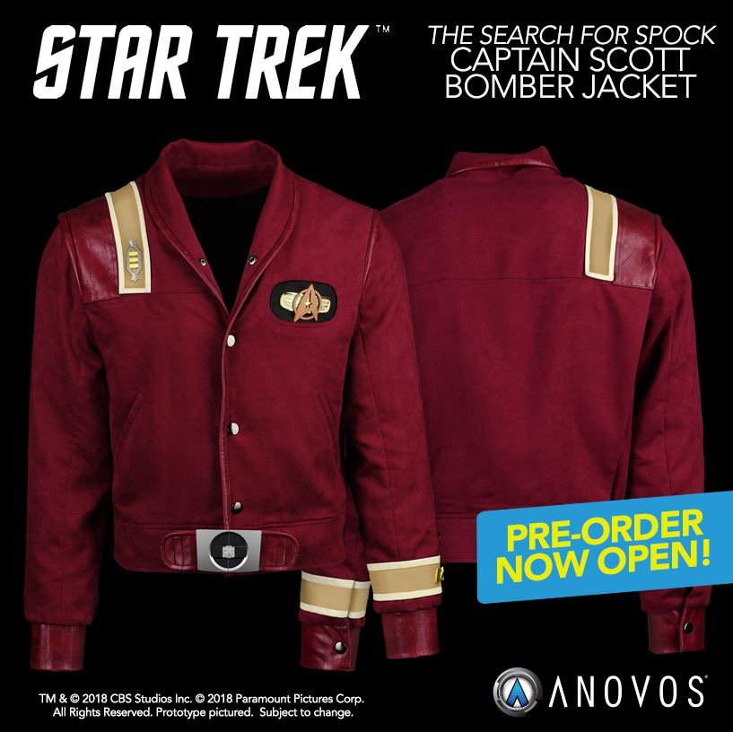The Captain Scott Bomber Jacket is a varsity-style replica worn by commissioned Captains in Starfleet and first introduced in Star Trek III: The Search for Spock