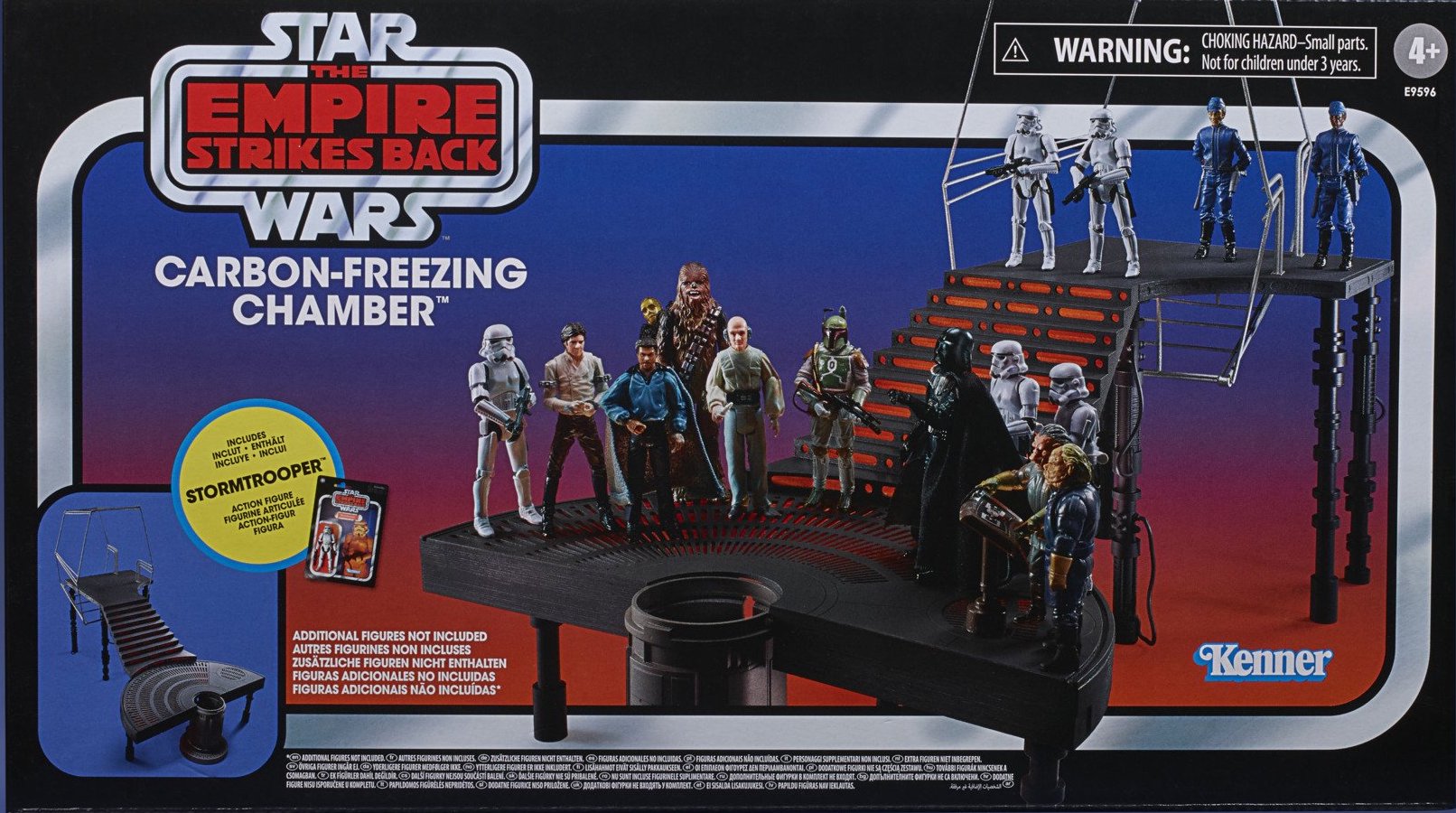 In Cloud City, Darth Vader decided to freeze Luke Skywalker in carbonite for transport to the Emperor. Before setting his trap for Luke, Vader tested the process on Han Solo! Includes Han Solo in Carbonite block and Stormtrooper.