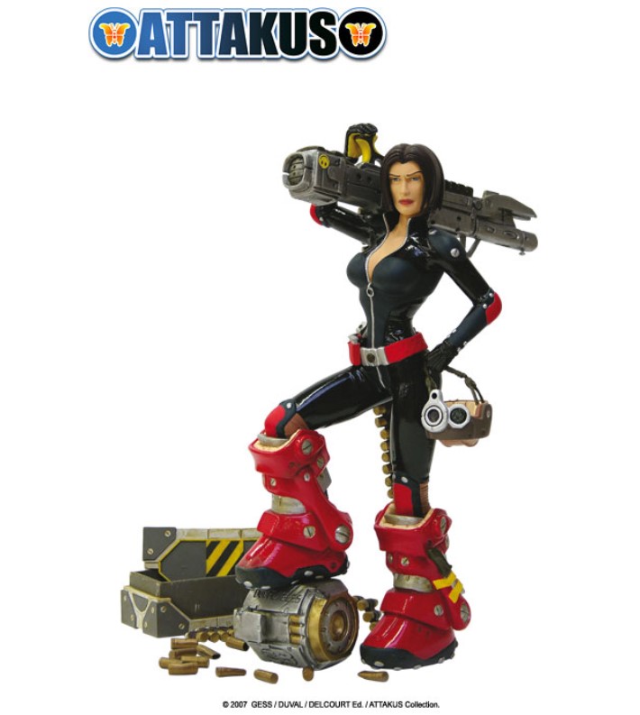Immerse yourself in the world of comics and discover Carmen Mc Callum ! Collector’s resin statue numbered and limited to 555 copies worldwide. Carved in France, and hand painted. Delivered with its Attakus certificate of authenticity. Attakus once again highlights the female characters of its favorite authors with this statuette inspired by the series Carmen Mc Callum by Gess and Duval, representing the heroine armed with his rifle, in black and robotic shoes. *** Carmen Mc Callum is a French science fiction comic book series. The Carmen Mc Callum series takes place in the same universe as Travis. Here too, artificial intelligences are omnipresent, as well as nanotechnologies, biotechnologies and powerful multinationals. A spin-off has also emerged, the series Code Mc Callum, also scripted by Fred Duval, but drawn by Didier Cassegrain.