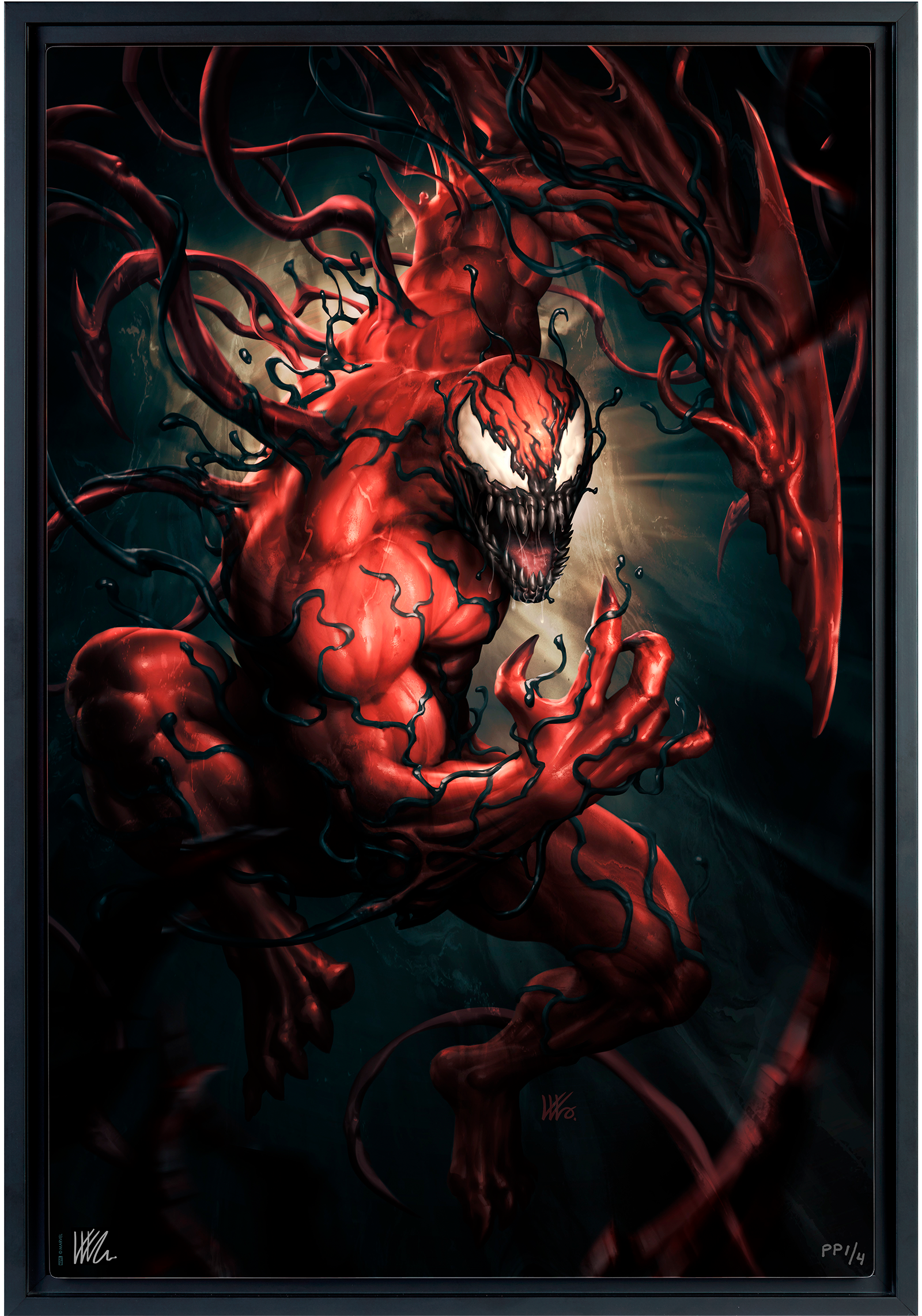 Unleash madness on your Marvel collectibles and bring home the Carnage Fine Art Print by Kendrick Lim today!