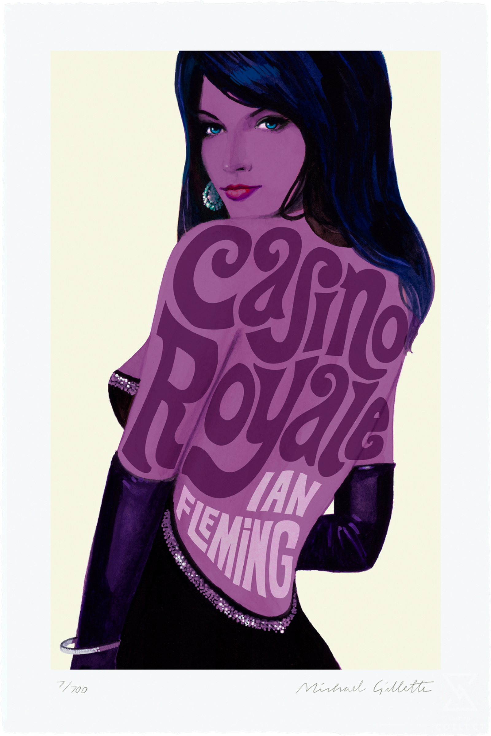 Sideshow is proud to present the Casino Royale James Bond Book Cover print by artist Michael Gillette. This officially licensed art is printed by Electric Works in San Francisco using archival inks on 100% Cotton Heavyweight rag paper with hand-torn deckle edges.