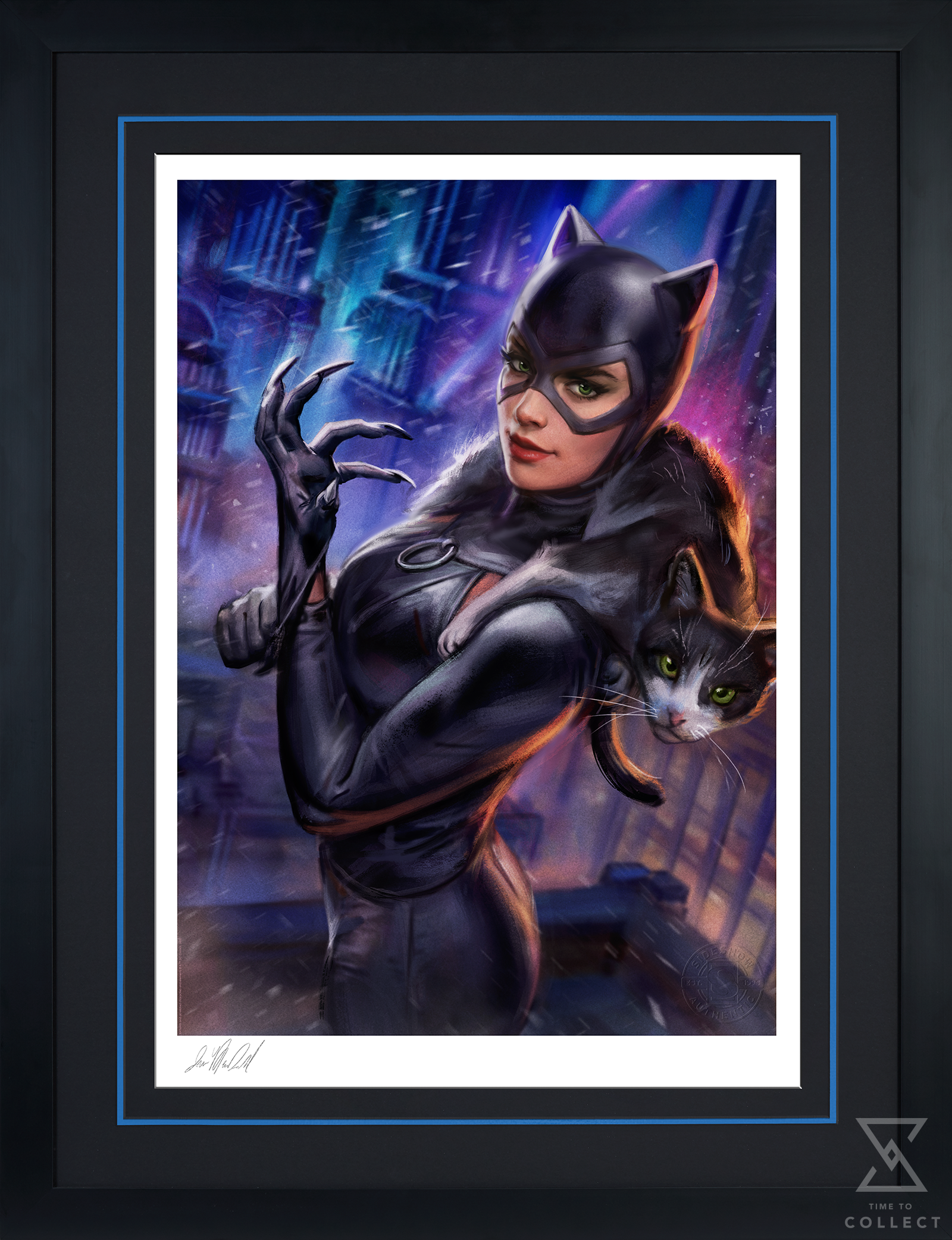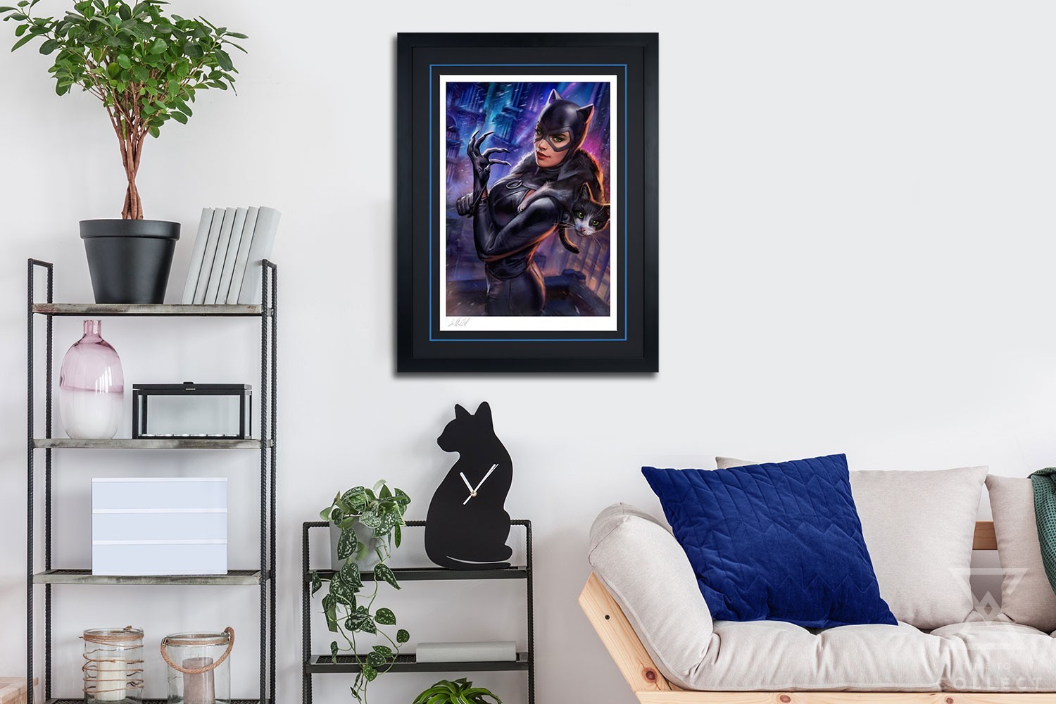 Originally created as a variant cover for Catwoman #21, written by Joëlle Jones for DC Comics, this comic book artwork is now available to fans as a fine art collectible. Each Catwoman #21 Fine Art Print features an authorized, automated artist signature and an embossed Seal of Authenticity as a part of the limited edition of 400 pieces.