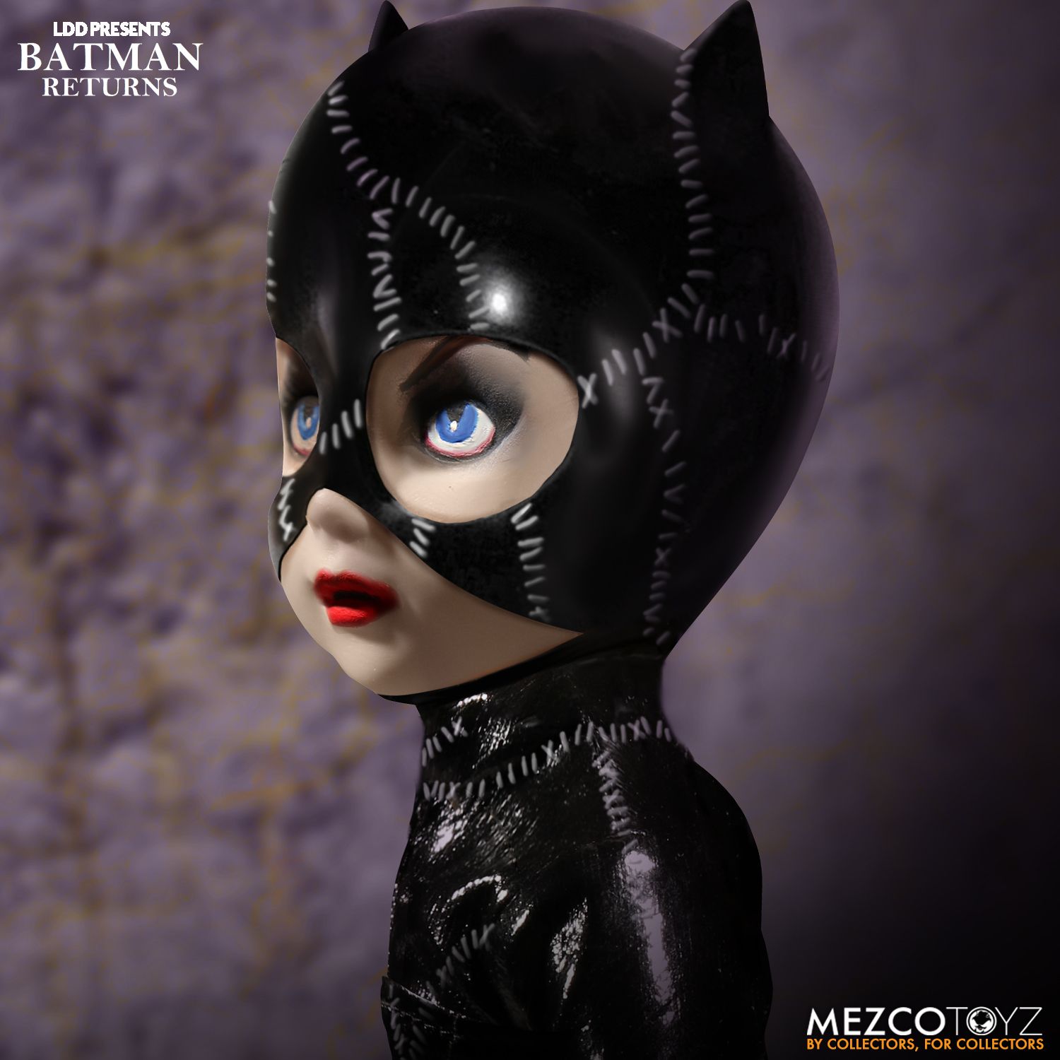 The LDD Presents Batman Returns: Catwoman features her trademark homemade black vinyl catsuit with contrasting white stitches and a slick sheen. Mistletoe is deadly but this doll can be deadlier.