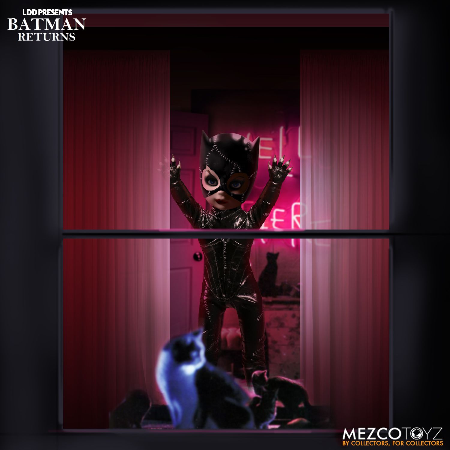 LDD Presents Batman Returns: Catwoman stands ten inches tall and features five points of articulation. She comes packed in a specially die cut window box purrrrfect for display.