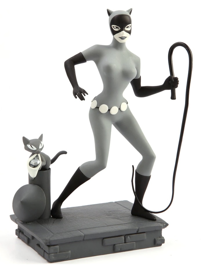 A Diamond Select Toys release! This cat has nine lives! Robbing the rich and running around on rooftops gets Selina Kyle’s engine racing, and now DST has captured her in the act with this 9-inch scale PVC statue! Standing atop a rooftop base with her feline friend, this PVC statue of Catwoman as she appeared in Batman: The Animated Series comes packaged in a full-color window box, and will fit in with the rest of your DC Animated Femme Fatales statues. Sculpted by Steve Varner Studios!