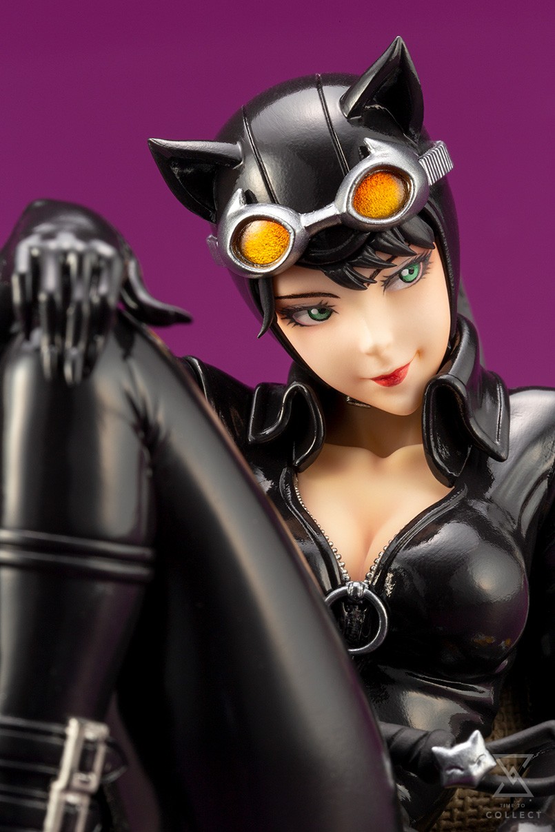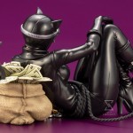 Batman’s fateful rival and love interest, Catwoman is making her return to the Bishoujo series with brand new art by Shunya Yamashita! Catwoman rests against a burlap sack stuffed with cash, with a satisfied smile on her face that is sure to steal your heart! The statue is packed with exciting details that give the piece a unique sense of atmosphere, from Catwoman’s signature whip that playfully resembles a cat’s tail, to the actual kitten’s tail peeking out from Catwoman’s stash. The details in the statue’s sculpting as well as the variety of textures and painting give this Bishoujo a unique appearance that is sure to win its way into your heart and your collection!