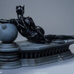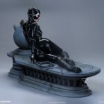 The Catwoman 1:4 Scale Maquette measures 13.5” tall and 20” long as Selina Kyle reclines luxuriously on a Gotham City rooftop alongside the logo for Shreck’s Department Store. The stonelike feline fixture grins down at the streets below while Catwoman lies in wait for Batman, hiding her signature bullwhip behind her back, ready to spring into action.