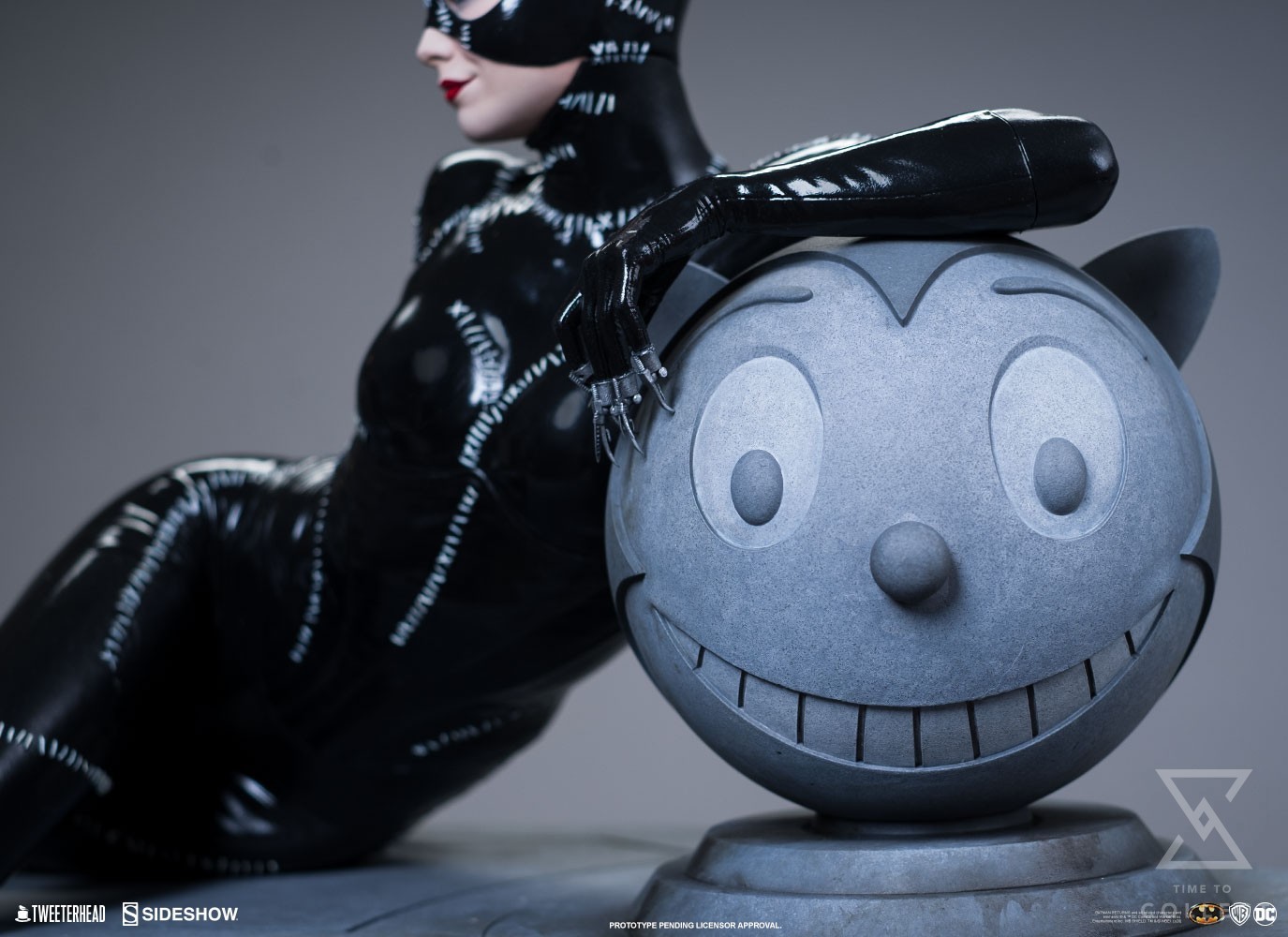 The fully sculpted Catwoman 1:4 Scale Maquette is a meticulous and faithful recreation of Michelle Pfeiffer’s unforgettable movie costume, detailed down to the accurate stitching and unique claw weapons on her fingertips based on actual reference from the film props. Her black catsuit features a glossy paint application to mimic the material appearance of the cinematic outfit and has sculpted lacing on the waist cincher and knee-high boots. Finished with a sultry portrait beneath her cowl, this incredibly authentic Catwoman collectible by Tweeterhead captures all the allure and danger of everyone’s favorite feline femme fatale.