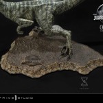 Charlie stands ready to take cues from the pack leader on a Jurassic World-themed earthen base sporting a bronze-finished Jurassic World logo towards the front.