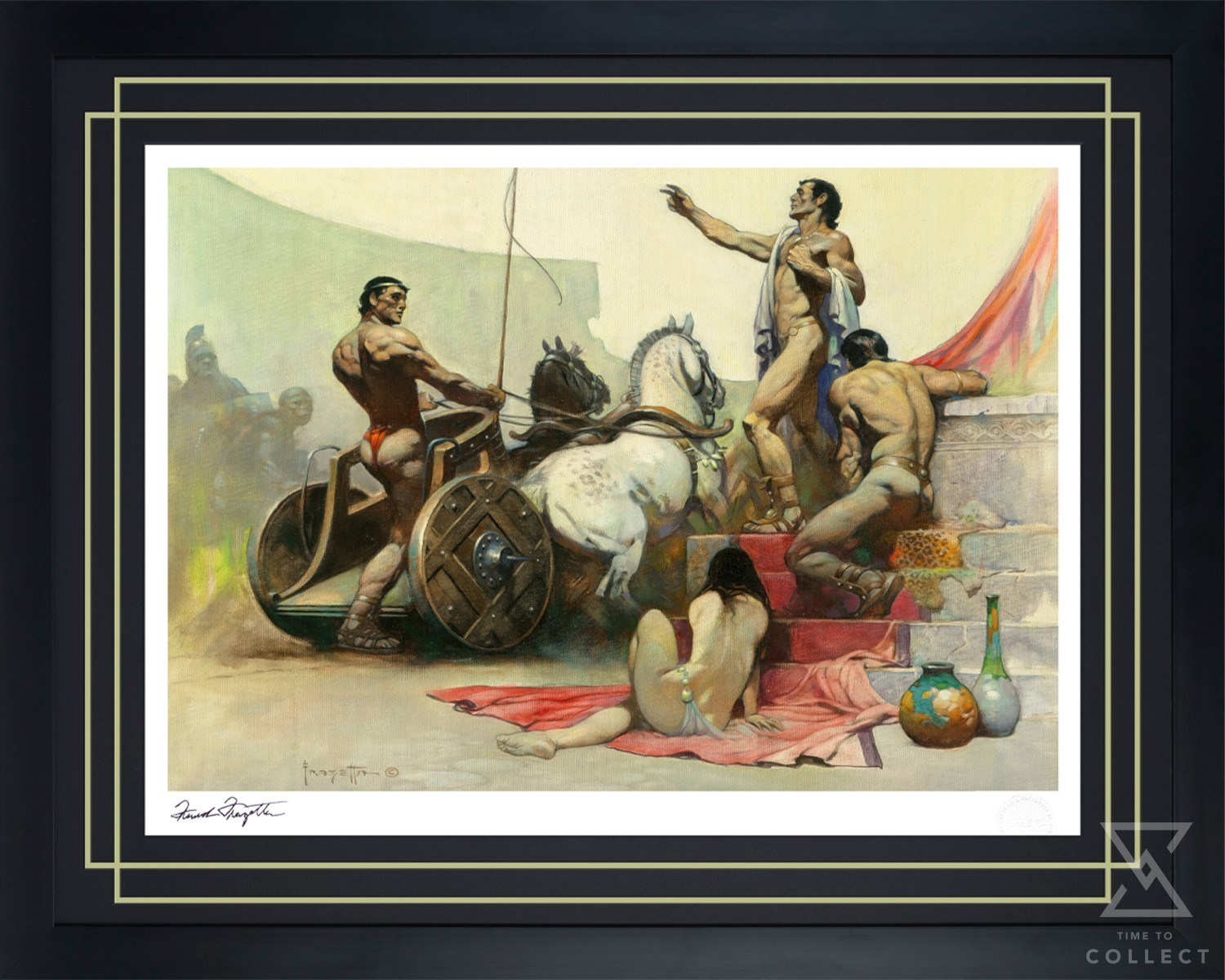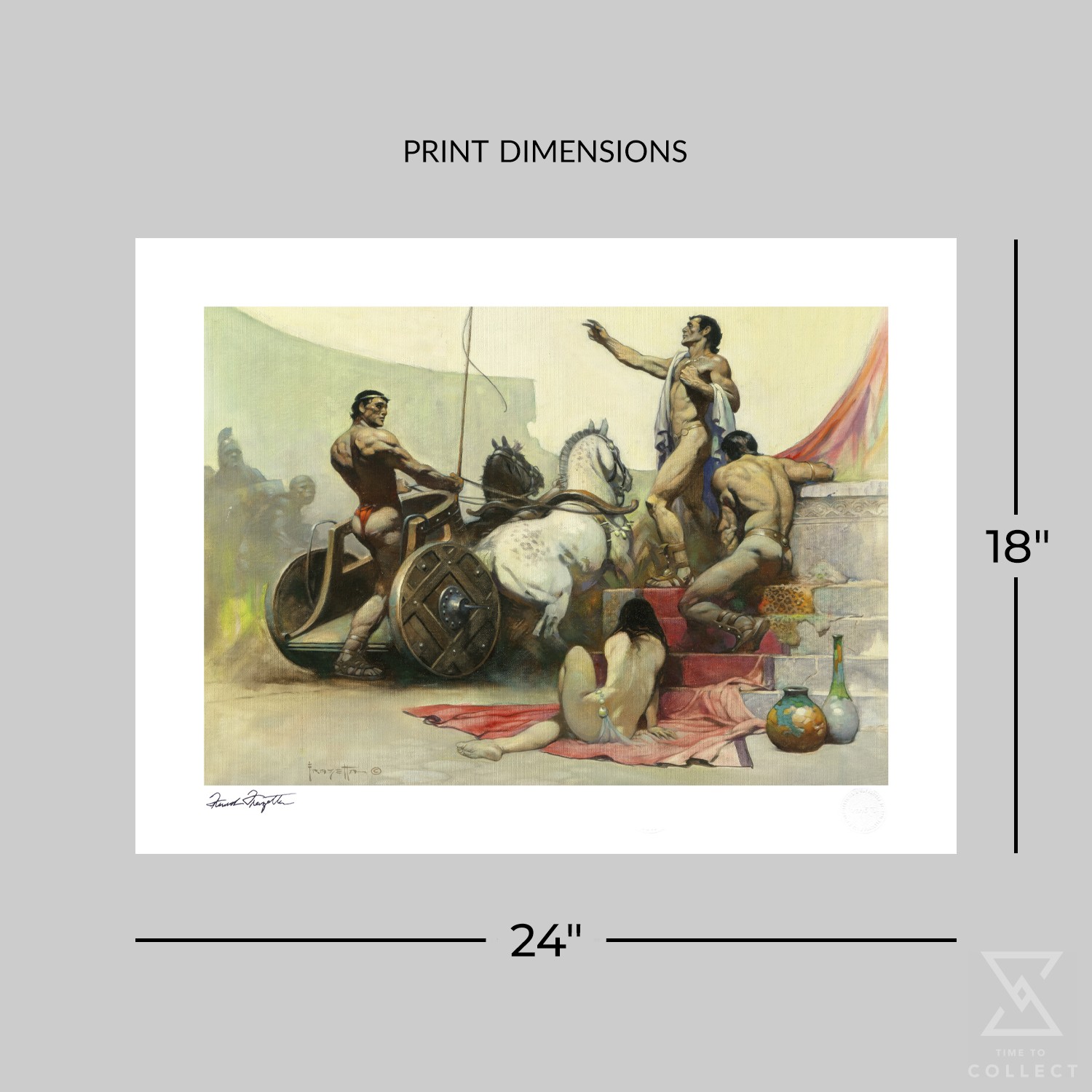 - Hand stamped authorized signature of artist, Frank Frazetta