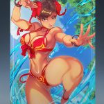 Faithfully recreated based on her in-game character model, Chun-Li is dressed in a sculpted red and cream-colored bikini, decorated with numerous bows, bracelets, and even a pair of matching sandals. A graceful martial artist in peak fighting form, her athletic physique has been rendered in expert detail to blend realism with SFV’s distinct animated style. Chun-Li’s hair holds a beautiful red hibiscus flower, and her manicure and pedicure are perfectly coordinated to complete her relaxation-ready look.