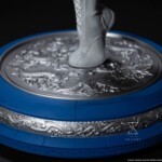 The Chun-Li 1:2 Statue is posed on a low profile disc base decorated with elements from her classic color palette and sculpted details modeled after her embroidered belt.