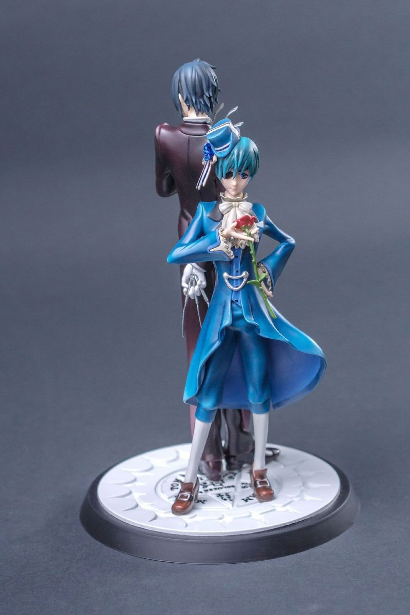 “Ciel is the heir of the Phantomhive noble family and Queen Victoria’s watchdog. He is set in his classical outfit, with an eyepatch protecting the symbol of the pact he made with Sebastian. He holds a red rose in his hand.”