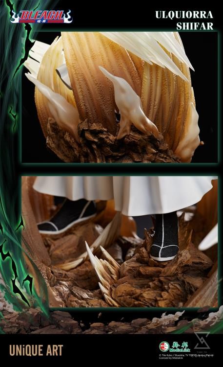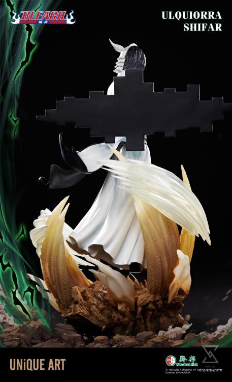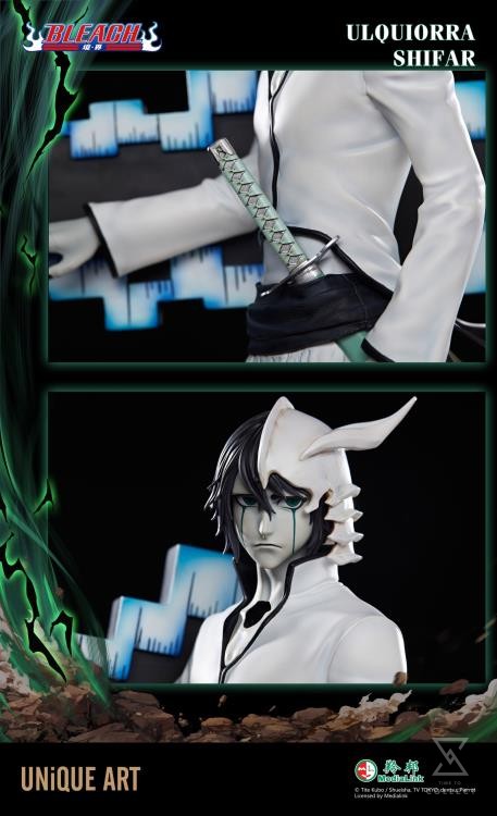 From the Bleach anime series, comes a stunning statue of Ulquiorra Cifer in 1/4 scale. Standing over 15 inches tall, Ulquiorra’s gaze is serious and he stands atop a highly detailed base. This statue is sure to be a stand out in any Bleach collection.