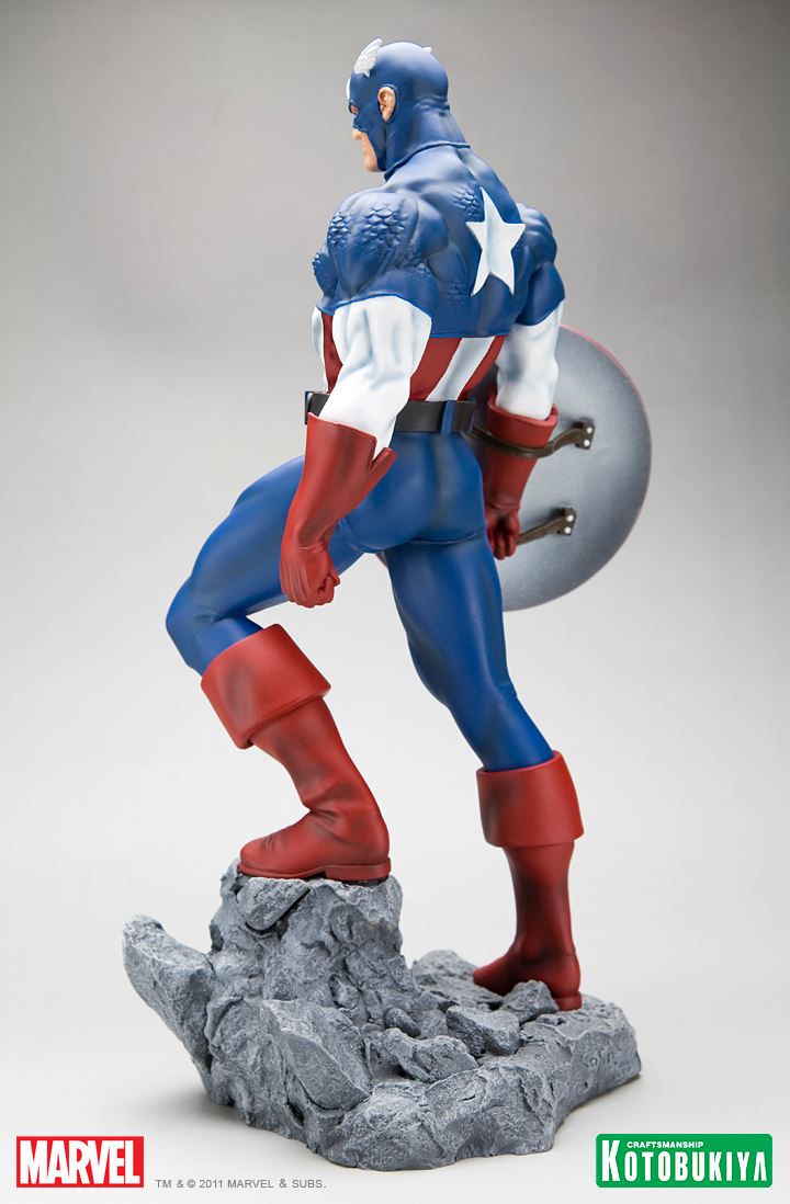 Created in 1941 by Joe Simon and Jack Kirby to represent opposition to Nazi Germany, Captain America combined superhero stories with patriotism and the fight against oppression in the world. From humble beginnings as a physically weak young man, Steve Rogers attempted to join the United States military service to combat the threat in Europe. Recruited into a secret “Super-Soldier” program, Rogers was given a serum and radiation that transformed him into a paragon of human athleticism. With a red, white, and blue costume and special aerodynamic shield, Captain America burst onto the superhero scene. Rogers would team up with other heroes and fight alongside the Avengers on multiple occasions, and it’s that heroic inspiration that drives his latest appearance: Captain America Classic Costume! Coinciding with the upcoming Avengers film in 2012, this series celebrates the classic versions of some of Marvel’s greatest heroes.