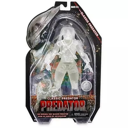 The original 1987 Predator: For the first time the Classic Predator is offered in his cloaked form simulating the movie cloaking effect. This exclusive Toys R Us figure stands nearly 18 cm tall and comes in a classic clamshell packaging.