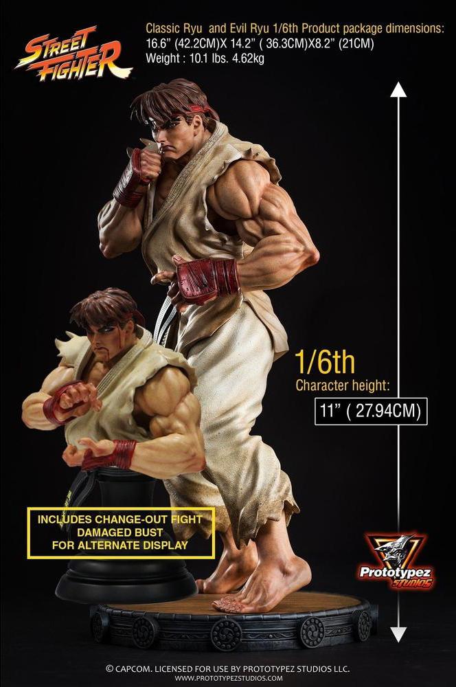 Includes interchangeable upper body featuring Ryu with battle damage, and features magnets in the torsos, belt, and head band tails