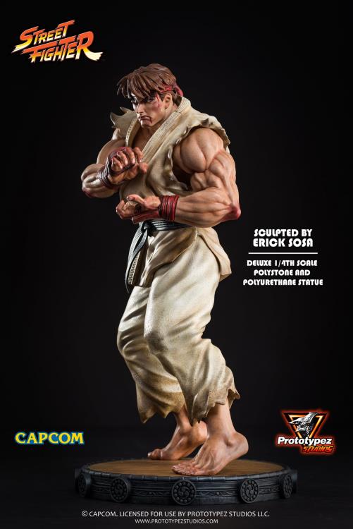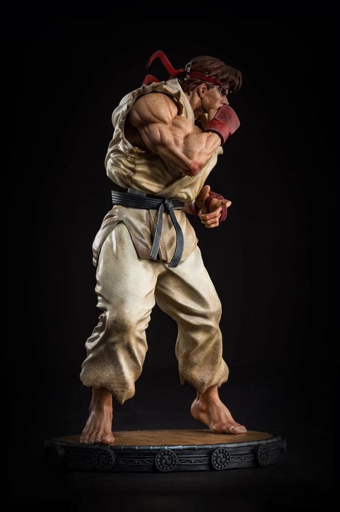 This Ryu statue is made of high-end polyurethane and solid polystone resin. The classic Ryu action figure features magnets to hold both torsos, belt, and head band tails in place. Ryu is depicted in the classic Super Street Fighter 2 animated Hadouken intro pose designed by Capcom’s own master character designer Yasuda Akira, A.K.A. Akiman.
