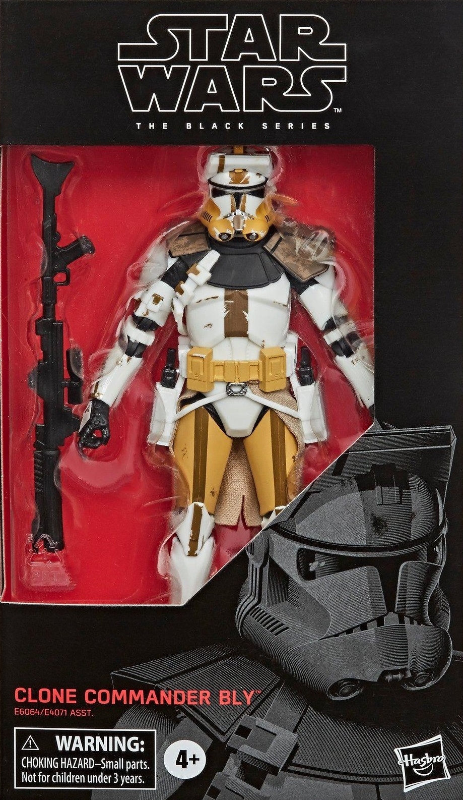 A veteran of many Clone Wars battles, Clone Commander Bly (clone designation CC-5052) served in the 327th Star Corps on such worlds as Quell, Maridun, and Felucia. Kids and collectors alike can imagine the biggest battles and missions in the Star Wars saga with figures from Star Wars The Black Series! Includes: figure and 3 accessories.