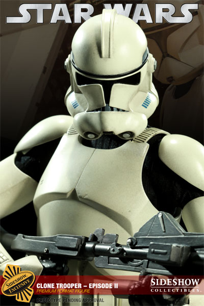 The Clone Trooper Premium Format figure captures every detail of the armored trooper with outstanding detail. Each piece is individually painted and finished to exacting standards, each with its own unique quality and detail that is the trademark of a handcrafted Sideshow Collectibles product. Dressed in a fabric body suit with armor plating and detailed accessories, the Clone Trooper Premium Format Figure is the perfect addition to any Star Wars display.