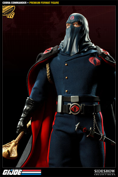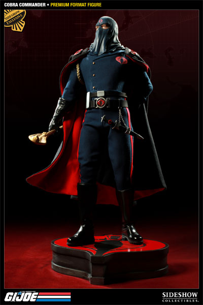 The Cobra Commander Premium Format figure captures every aspect of the GI Joe team’s most ruthless adversary with stunning realism. Each piece is individually painted and finished, each with its own unique quality and detail that is the trademark of a handcrafted Sideshow Collectibles product. The intricately detailed fabric costume includes a removable cape for customized posability. The Cobra Commander Premium Format Figure is an outstanding addition to any GI Joe or military display.