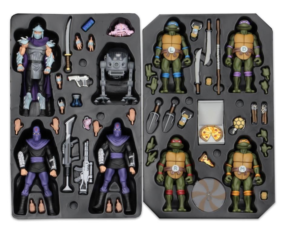 To celebrate 30 years of the classic Teenage Mutant Ninja Turtles cartoon, we needed to create something suitably epic, like this massive, limited edition collector’s set with carrying case! This totally radical set includes 8 action figures (Donatello, Leonardo, Michelangelo, Raphael, Shredder, Krang with Bubble Walker, and 2 Foot soldiers) and tons of accessories, all packed into two different figure trays in the vinyl carrying case. The case itself features original artwork by Ken Mitchroney, Archie Comics’ Teenage Mutant Ninja Turtles Adventures artist. Figures stand in 7” scale and are fully articulated. Case measures approximately 16” H x 10” W x 5.5” D.