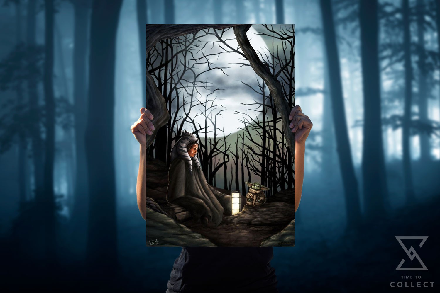 This artwork is inspired by Star Wars: The Mandalorian. This lithograph comes hand-numbered and with a certificate of authenticity.
