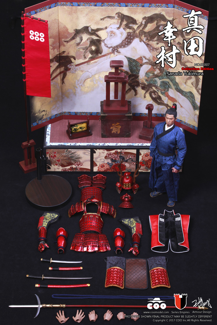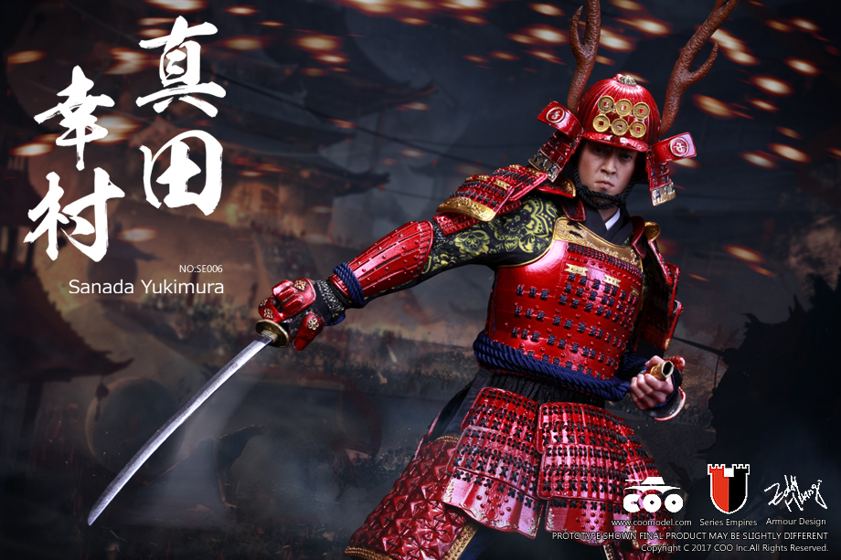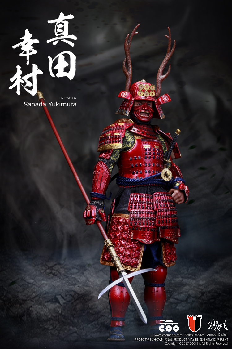 – One (1) red kabuto (helmet) with antlers and six-coin heraldry