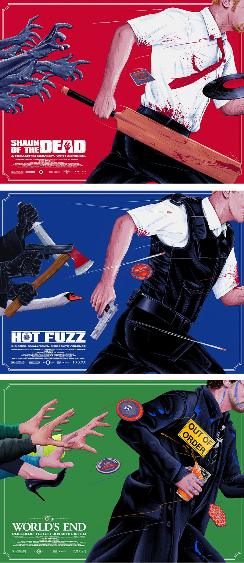 Sideshow and Vice Press present the Cornetto Trilogy Set #2 Fine Art Lithograph Print Set by Doaly!