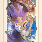 Sideshow Art Prints presents the Critical Role 10th Anniversary: Matthew Mercer Fine Art Print by artist Hannah Alexander, celebrating a decade of adventure across multiple campaigns. This parchment-styled, Art Nouveau-inspired illustration captures a trio of Matthew Mercer’s non-player characters, or NPCs, allied with Vox Machina, the Mighty Nein, and Bells Hells.
