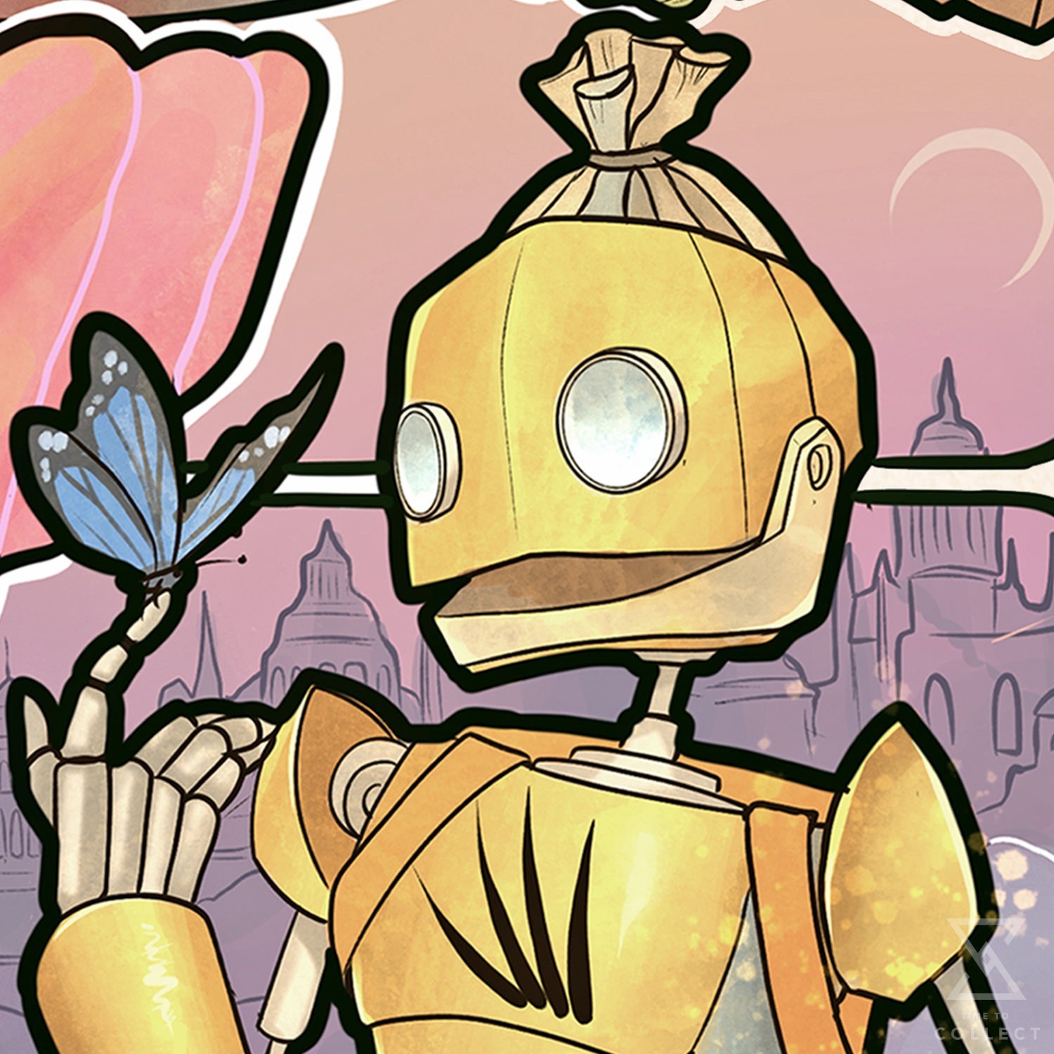 Three characters, each varied in personality, abilities, and history, stand connected by one player and the threads of fate woven across Exandria. Short in stature but big on personality, Nott the Brave, Scanlan Shorthalt, and Fresh Cut Grass represent just a portion of Riegel’s roster of characters. The goblin thief is ringed by a halo of buttons, unafraid to show her mischievous face. Sitting atop his Scanlan’s Hand spell, the musical maestro of Vox Machina flaunts his charming, sensual side as he serenades with a song and a spell. Below, the curious construct FCG spends some time with a beautiful butterfly, learning more about the living world around them. This intricate composition features incredible details from throughout Sam Riegel’s time at the Critical Role table, giving fans a chance to relive the excitement and action of 10 years of storytelling.