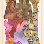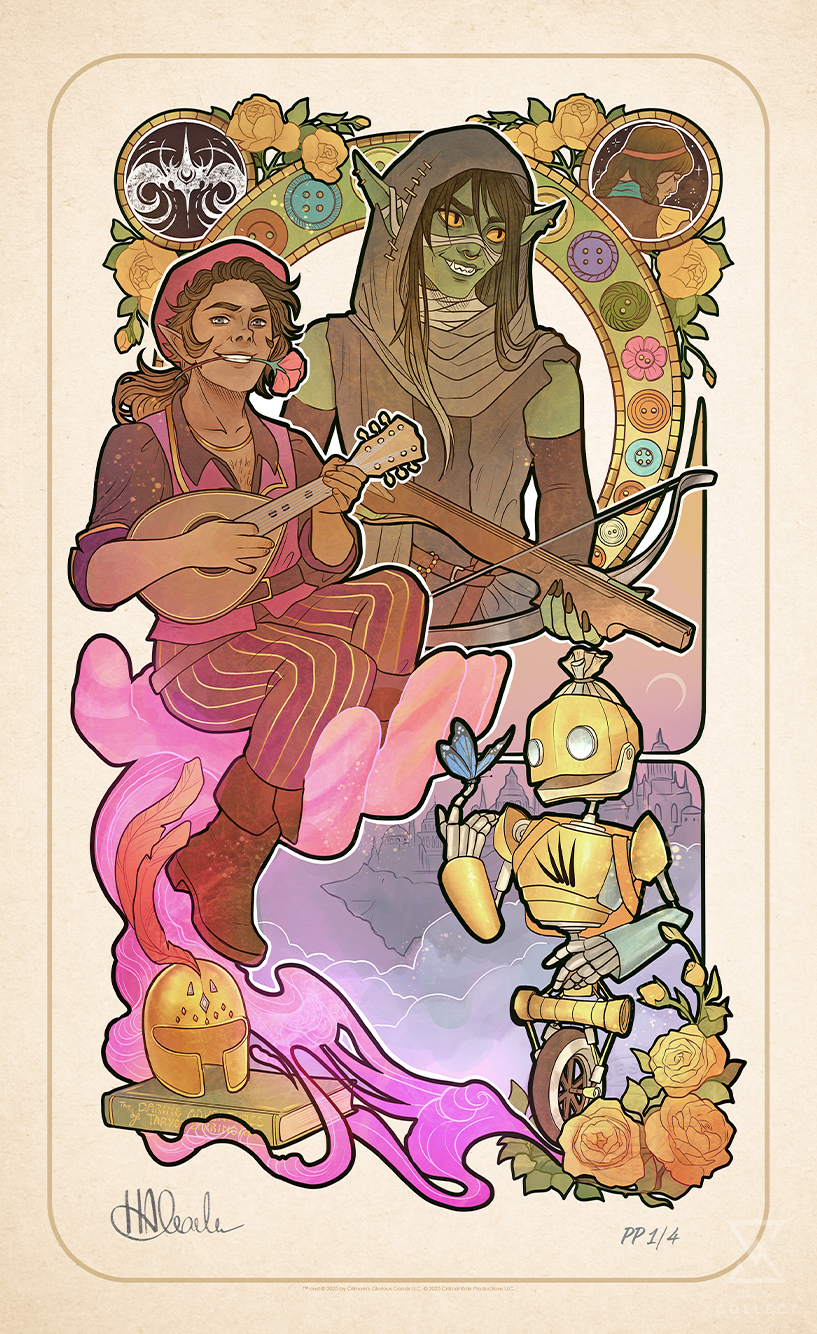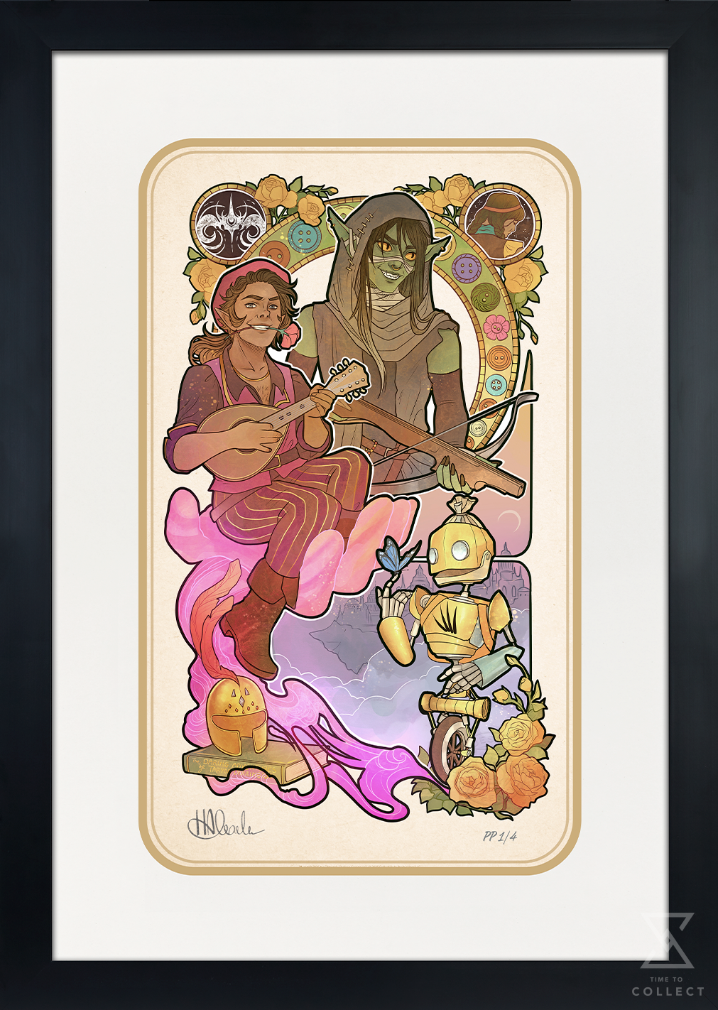 Sideshow Art Prints presents the Critical Role 10th Anniversary: Sam Riegel Fine Art Print by artist Hannah Alexander, celebrating a decade of adventure across multiple campaigns. This parchment-styled, Art Nouveau-inspired illustration captures a trio of Sam Riegel’s characters from Vox Machina, the Mighty Nein, and Bells Hells.