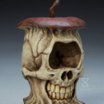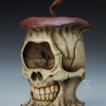 This apple resembles the desiccated skull of a one-eyed monster, with a sinister smile stretched wide under a single, cavernous socket. Dark, shriveled, red and brown apple skin frames the smooth texture and bone-white color of the inside flesh. Measuring 3.56″ tall, this ancient artifact is, at its core, a coveted replica ready to join your island of horror collectibles.