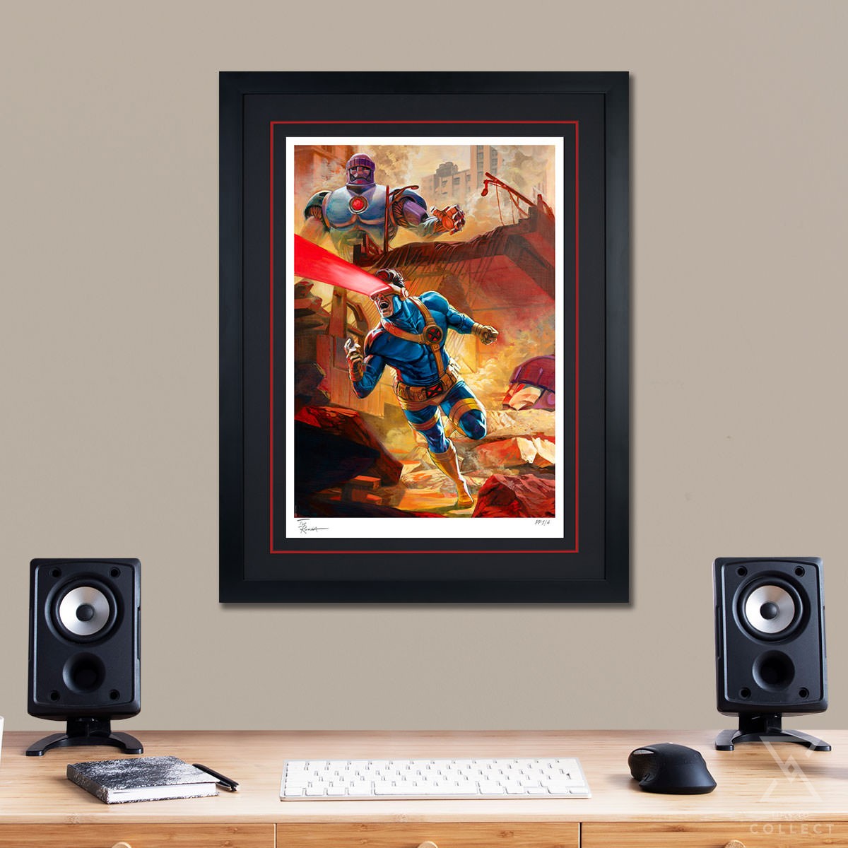 Inspired by the character’s appearance in Marvel Comics, this original X-Men art is available to fans as an unframed giclée print or in a custom framed presentation. Each Cyclops Fine Art Print features an authorized, automated artist signature and an embossed Sideshow Seal of Authenticity as part of the limited edition of 200 pieces.