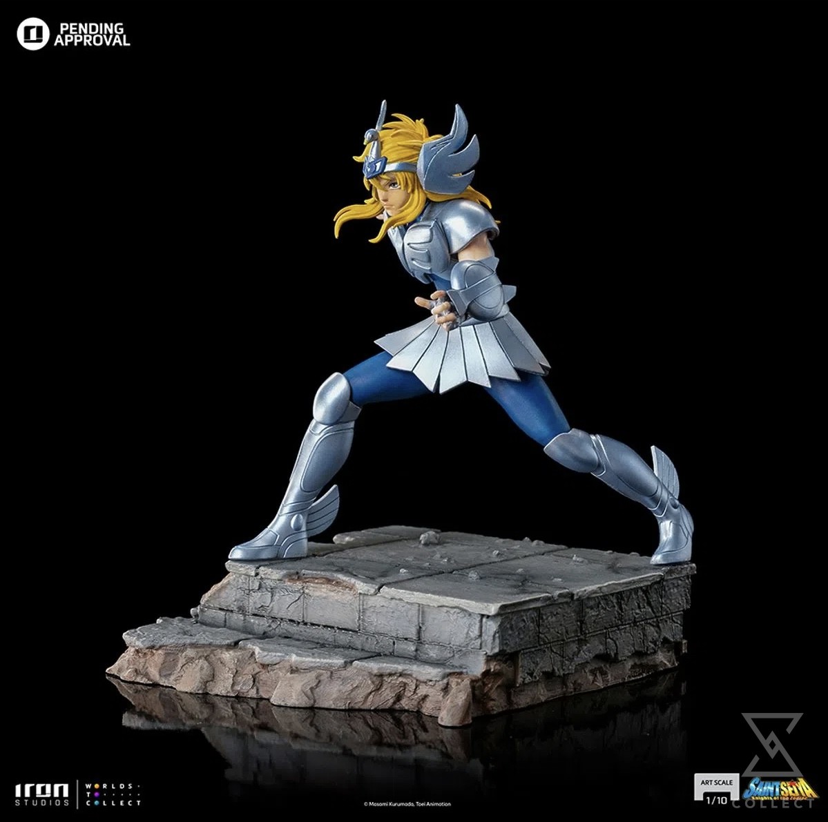 Iron Studios also bring the Deluxe version of the statue “Cygnus Hyoga – Saint Seiya – Deluxe Art Scale 1/10”, with a base with his rear protected by a wall of sharp frozen stalagmites, from which a sculpture of a great ice swan representing his avatar rises, with LED lights.