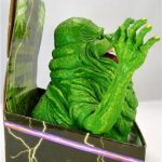 This is a 9-inch-tall dancing Ghostbusters Slimer figure by Neca, part of the Reel Toys line. It’s a neat piece and would make a great addition to any fan’s collection. The toy has a soft rubber body and an inner mechanism which makes him move his arms and shake to the Ghostbusters theme. Look out to use new batteries for good work.