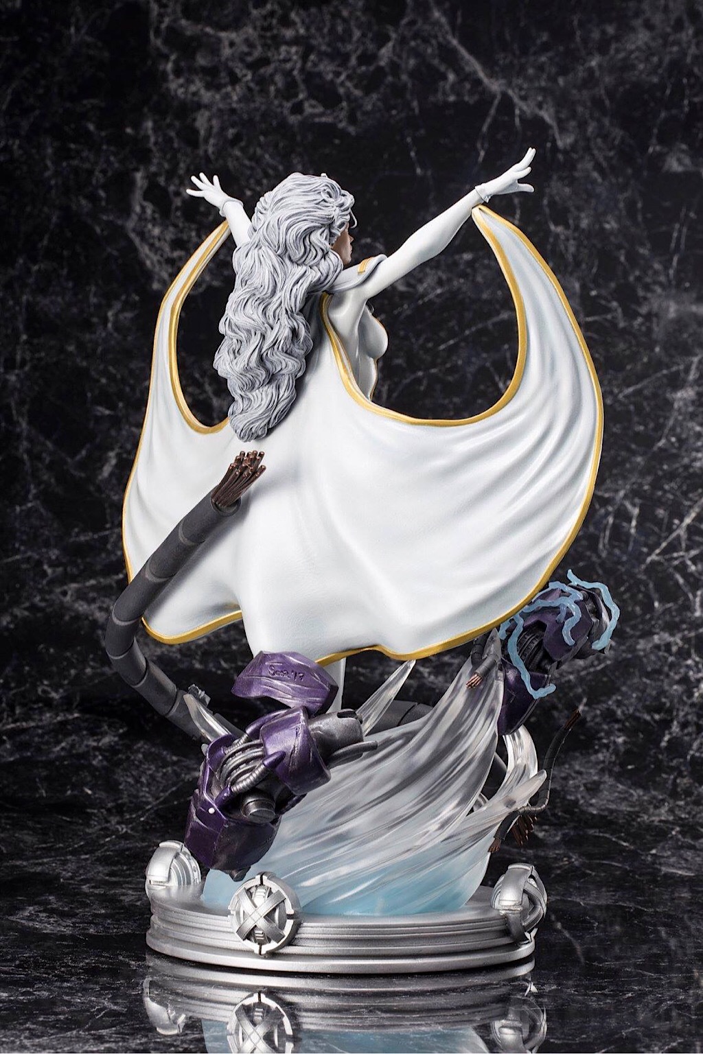 The latest entry in Kotobukiya’s Fine Art Statue line of high‐quality cold cast resin statues sculpted by Erick Sosa is the Omega Level Mutant and one of the most respected heroes amongst the X‐Men, Storm! Making her first appearance in Giant‐Size X‐Men #1 and making history as one of the first female characters of African descent, the popular mutant has since appeared in a variety of X‐Men adaptations.