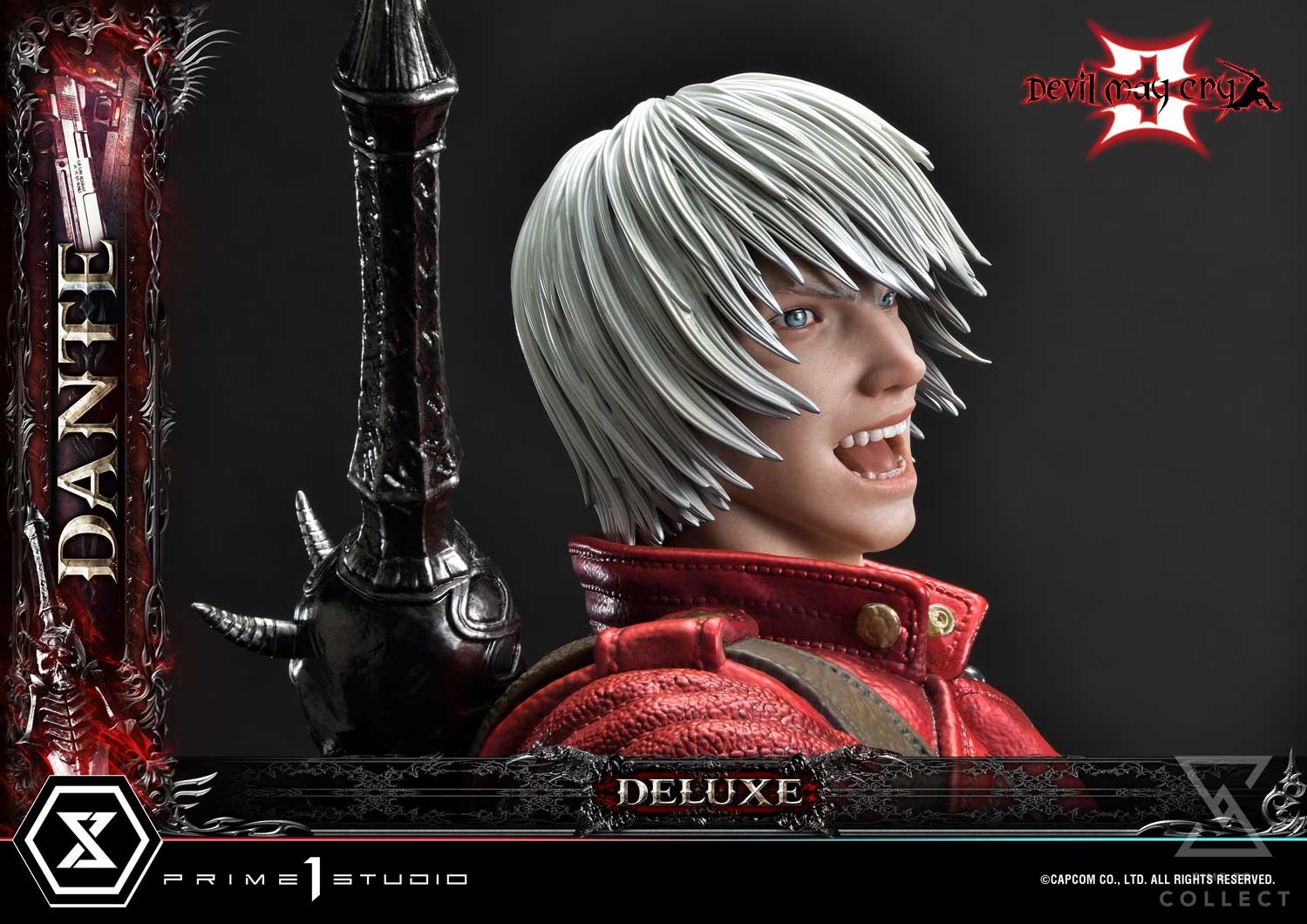 Prime 1 Studio is very proud to present yet another masterful entry to the Ultimate Premium Masterline Series: the 1:4 Scale UPMDMC3-01DXS Dante Deluxe Bonus Version from Devil May Cry 3: Dante’s Awakening. Following Devil May Cry 5’s critical success, it comes as no surprise that Prime 1 Studio would keep on delivering fans another massive favorite. Let us take you on a stroll down memory lane, introducing Dante in all his glory from the series’ third title from the nostalgic era of the PlayStation 2. Prime 1 Studio’s artists have once again done a marvelous job at bringing life to the Nephilim in stylish and rebellious aesthetics that we’ve all known so well for almost two decades. Standing proudly at 26 inches tall, Dante’s in his younger years, iconic long, untamed white hair cascading down his face and contrasting with his gleaming, piercing eyes. His face reflects a carefree and cocky expression, conveying his devil-may-care attitude! The young devil hunter shows us his muscular physique while dual-wielding pistols, Ebony and Ivory, ready to unleash a storm of bullets at a moment’s notice. Strapped to his back is his faithful weapon, the massive magical blade known as Rebellion. His deep crimson coat billows dramatically, adding a sense of flair to the statue, textured and shaded to perfection, each zip and stitch has been carved with the highest level of skill. At his feet lays bloodied remains of some poor demon who’s met its doom.