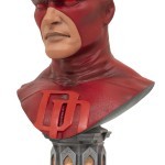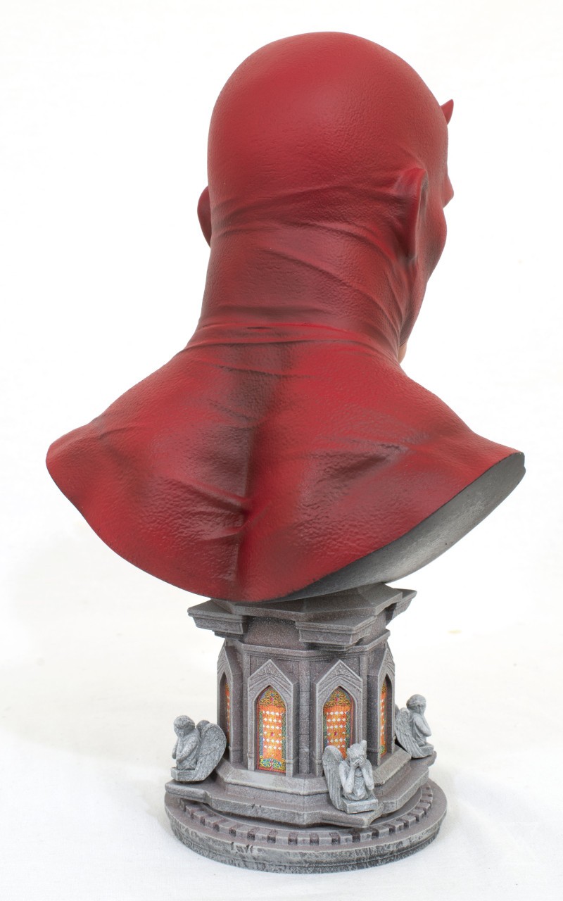 Daredevil is a legend in Hell’s Kitchen, and now he’s a Legend in 3D! The blind vigilante based out of New York City is the newest half-scale bust from DST. Measuring approximately 10 inches tall, this impressive bust of lawyer Matt Murdock’s alter ego features a detailed church spire as a base, complete with angelic statuary. Limited to only 1000 pieces, it comes packaged with a numbered certificate of authenticity in a full-color window box. Designed by Joe Allard, sculpted by Rocco Tartamella!