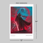 Terror grips the galaxy in this formidable Star Wars artwork that features the Sith Lord himself, Darth Vader, with the menacing oppressor that is the Death Star looming just beyond. Each fine art giclee print is hand-numbered from an exclusive SDCC 2024 limited edition of 150 pieces and comes with a Certificate of Authenticity.