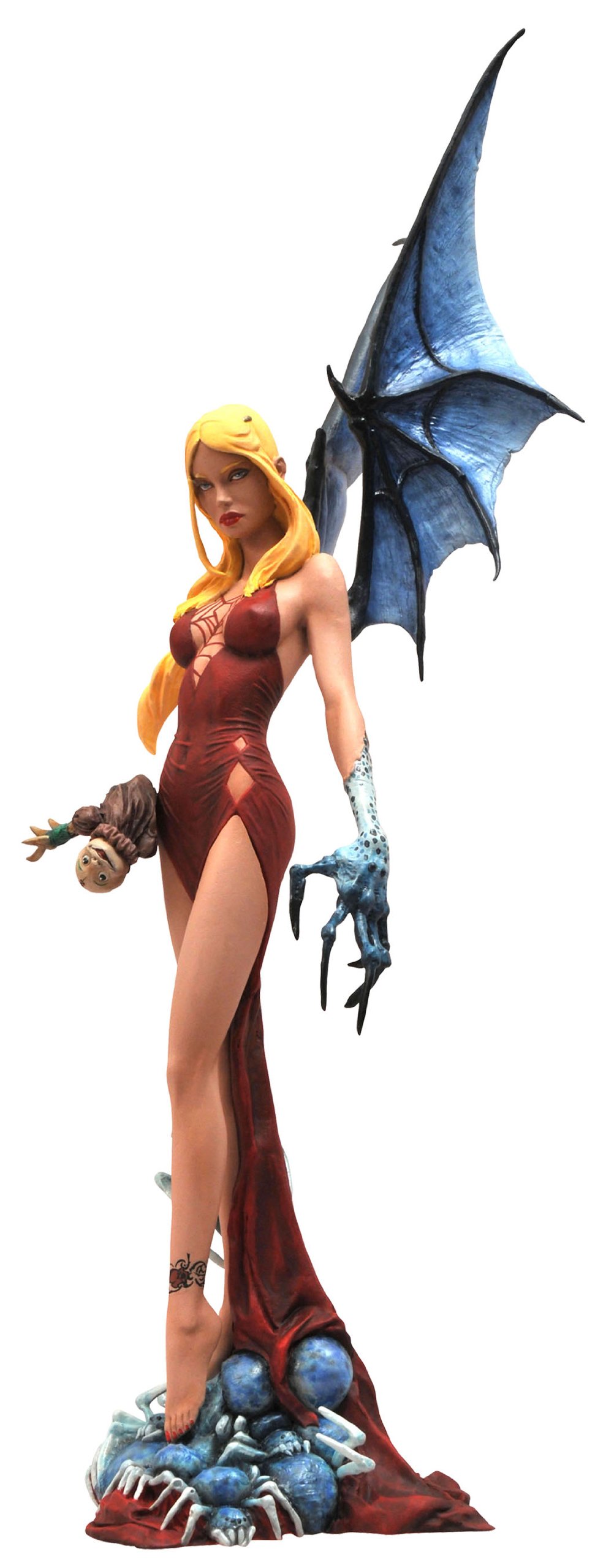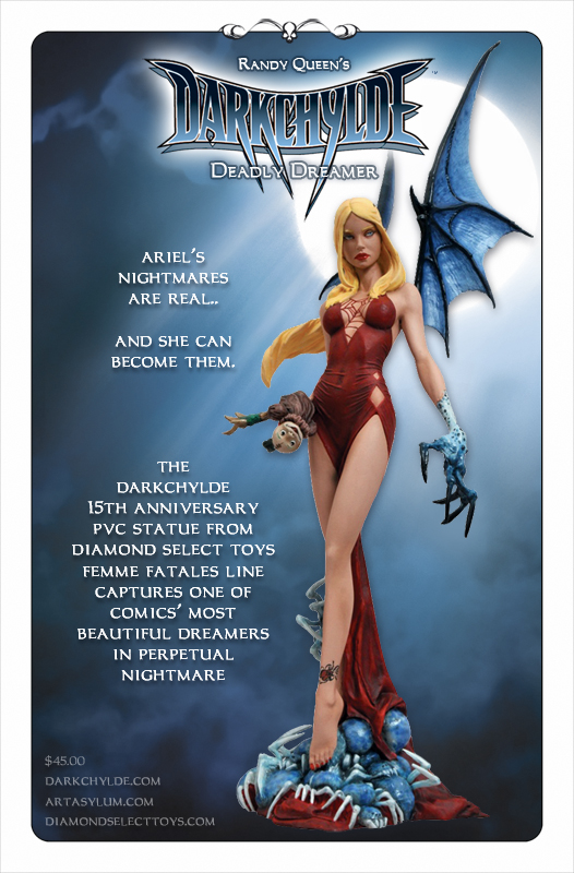 A Diamond Select Toys release! Designed by Randy Queen. Sculpted by Sam Greenwell. Ariel Chylde is a girl cursed to become the many creatures from her recurring nightmares. Every time Ariel transforms, she sheds her skin and a new nightmare emerges from her Id to act out her deepest, darkest impulses. Standing over 9 inches tall with her nightmarish wings, this statue of Darkchylde’s Ariel is cast in high-grade vinyl and features a high level of detail and an exacting paint process.
