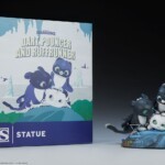 The Dart, Pouncer, and Ruffrunner Statue measures 5.73” tall and 7.67” wide as the tiny trio of dragons tumble over one another on a blue rocky cavern base with colorful flora elements. Also known as the Night Lights, the adorable offspring of Toothless the Night Fury and their mother the Light Fury signify a new era for dragons as they find solace in the lush utopia known as the Hidden World.