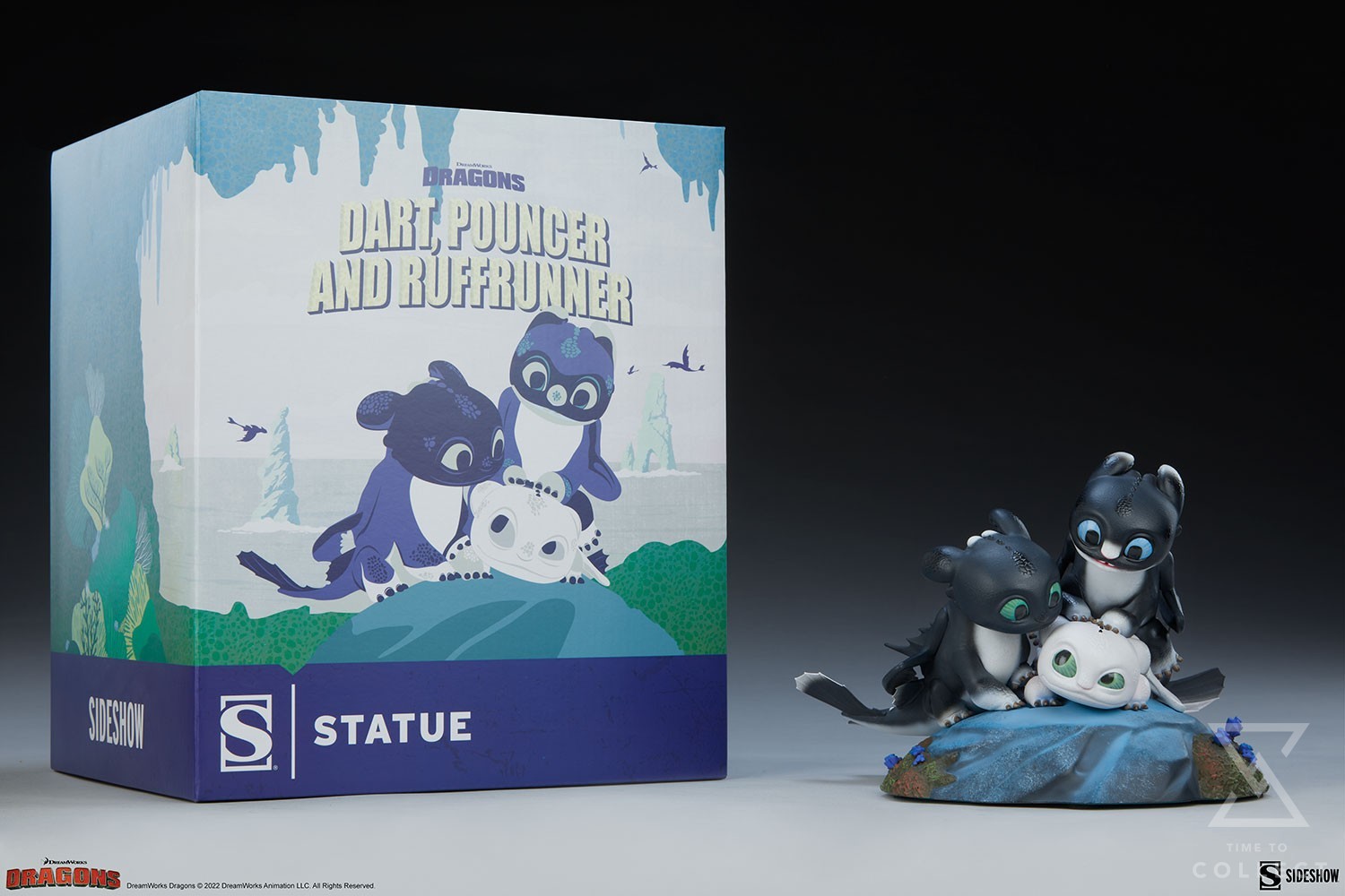 Sideshow presents the Dart, Pouncer, and Ruffrunner Statue, inspired by the third installment of the beloved How to Train Your Dragon franchise.