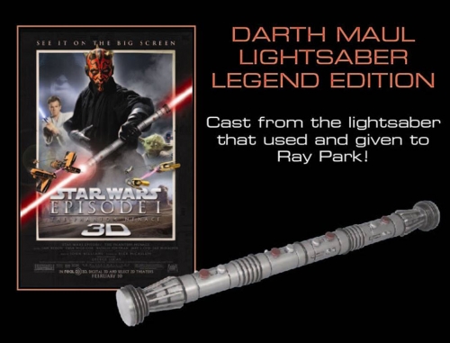 eFX is proud to present this very special prop replica, the Legend Edition Darth Maul Lightsaber as featured in Star Wars Episode I: The Phantom Menace. We are sure that this will be a proud, new addition to your Star Wars prop replica collection!