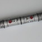 There were several versions of Darth Maul lightsabers created, each one was designed specifically to suit the requirements of a particular scene or sequence. There were a non-bladed and a bladed dueling “hero”, a dueling stunt, and a cut away. The eFX Darth Maul Legend Edition Lightsaber is a faithful recreation of the non-bladed hero version lightsaber equipped with metal emitters. This replica was created by directly molding a screen-used original, thus an eFX Legend.