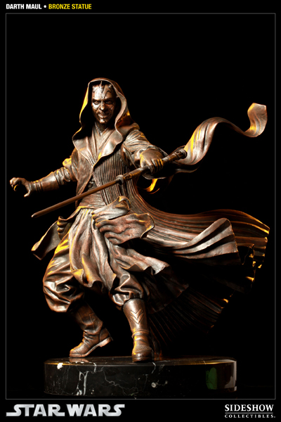 Joining Sideshow Collectibles’ presentation of Bronze Statue icons is Darth Maul, capturing one of the most fearsome Sith villains of the Star Wars Universe. Standing over 19 inches tall, every aspect of Darth Maul’s costume has been reproduced in intricate detail, capturing the movement and power of this imposing character. The Darth Maul Bronze Statue is a definitive Sith collectible, the perfect addition to any Star Wars collection.
