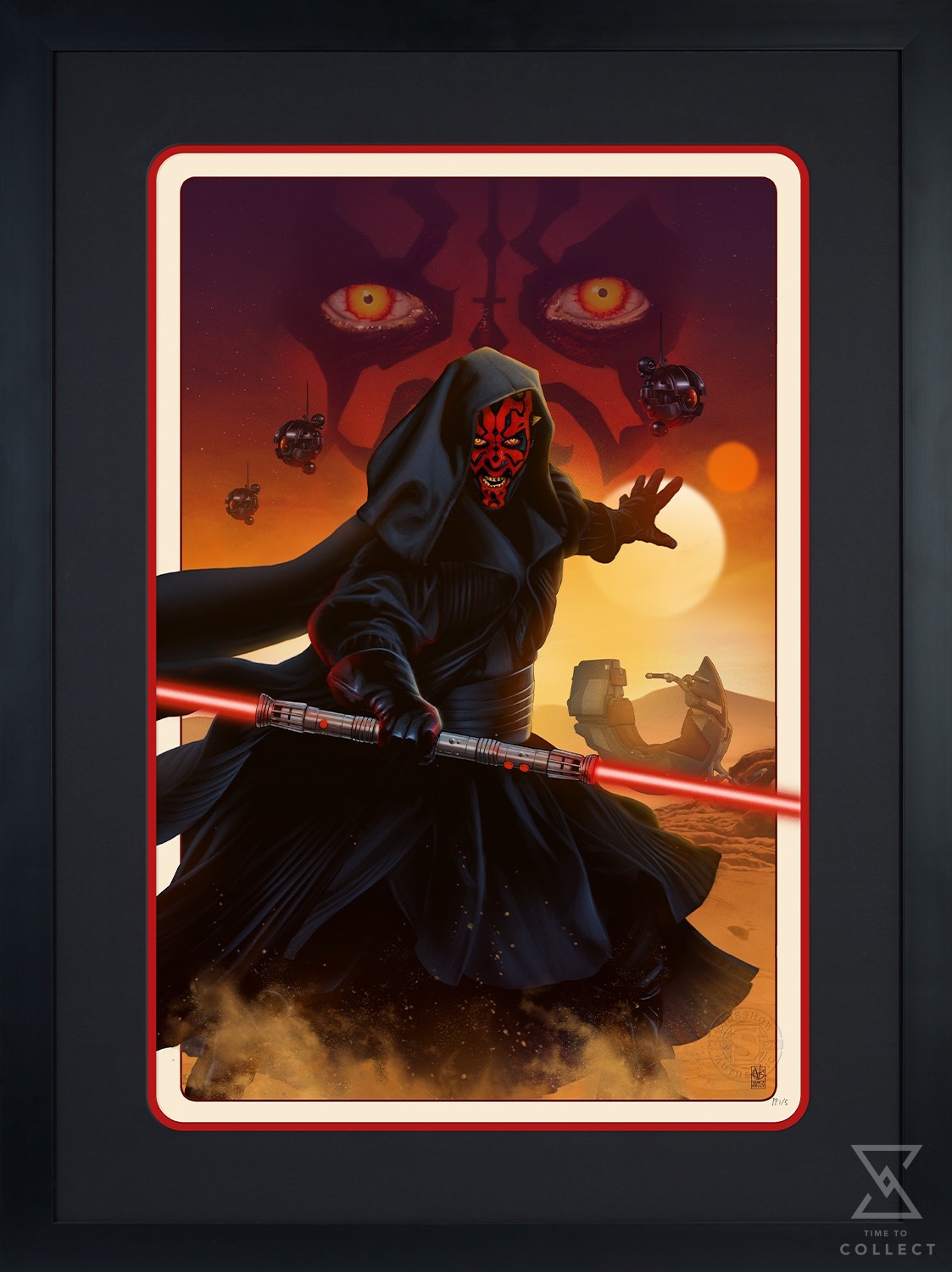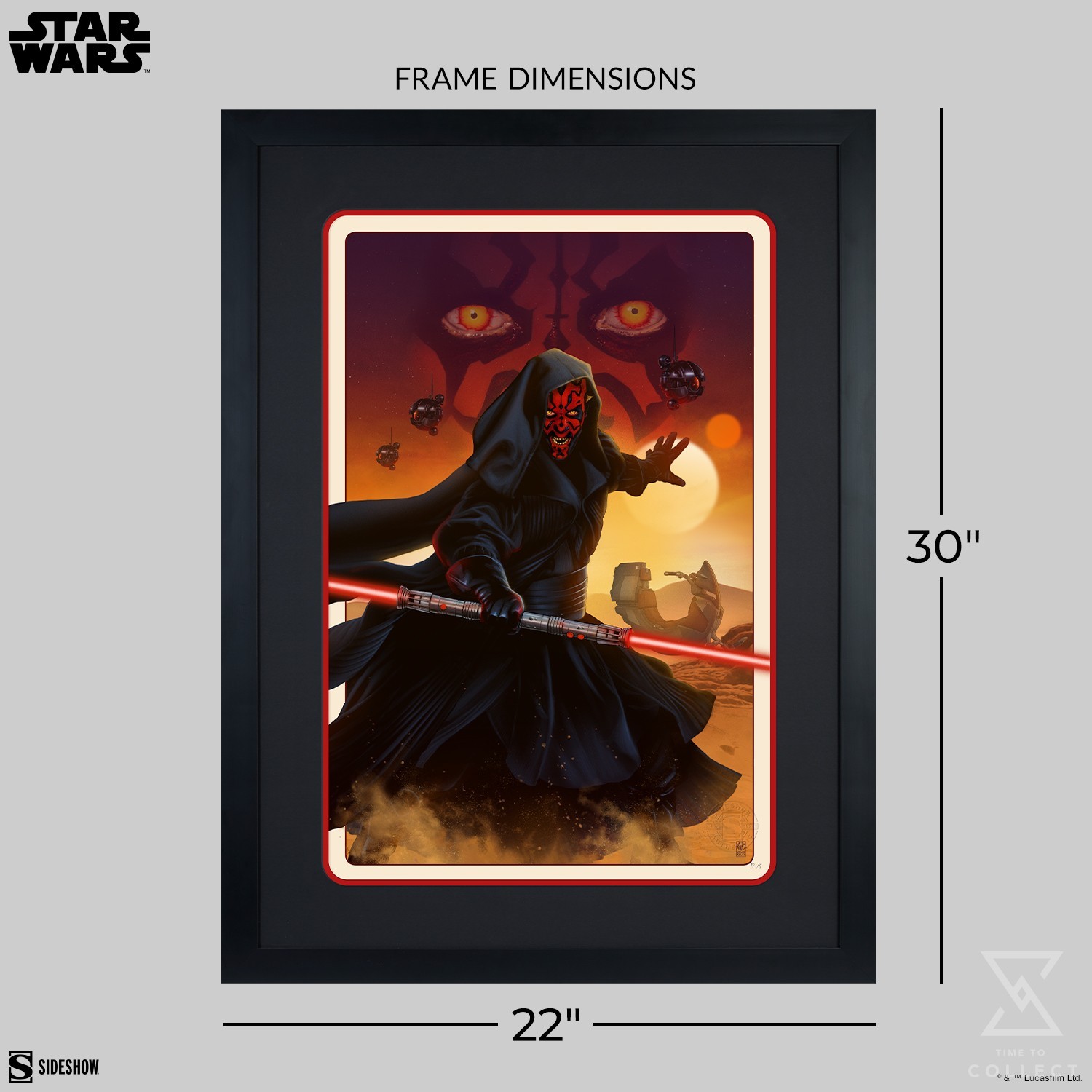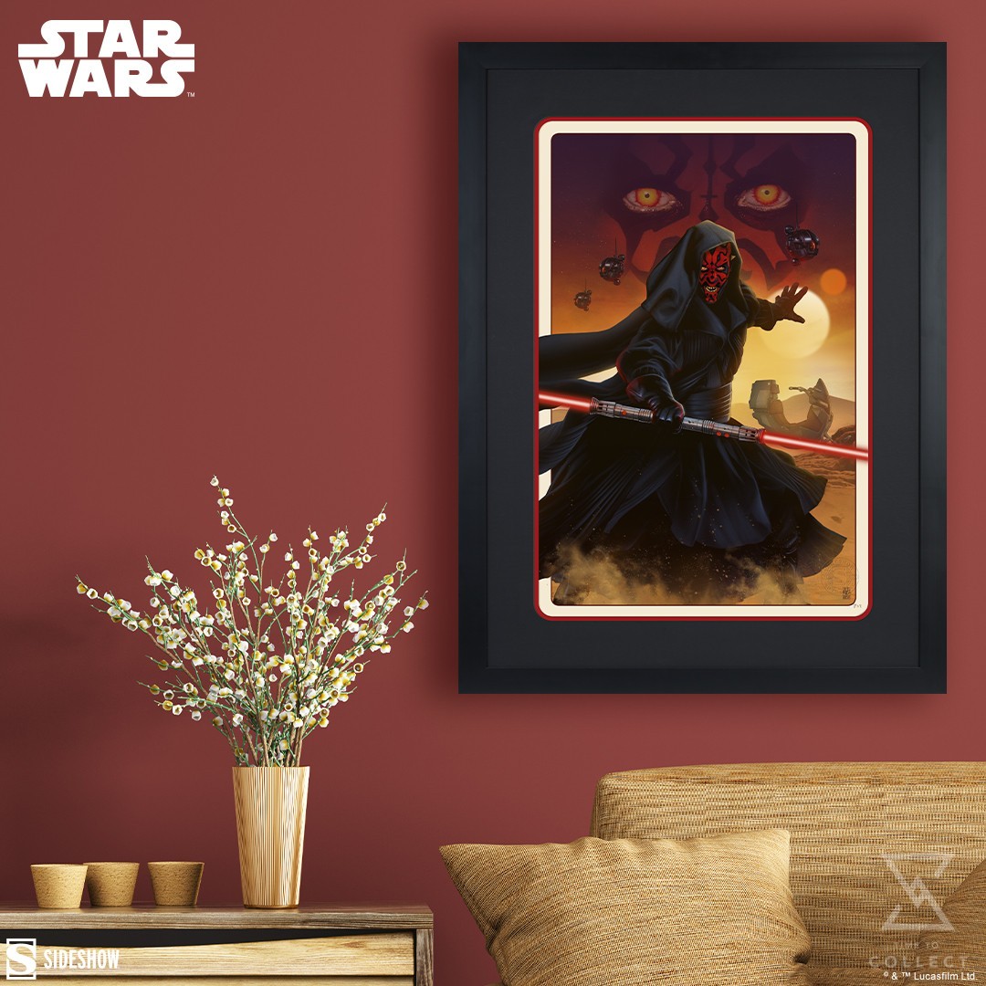 Inspired by the character’s first appearance in the Star Wars universe, this Darth Maul art is now available to fans as an unframed giclée print or in a custom framed presentation. Each Darth Maul: The Phantom Menace Fine Art Print features an embossed Sideshow Seal of Authenticity as part of the limited edition of 250 pieces. Pair it with the Darth Maul Life-Size Bust by Sideshow — sold separately — to create a powerful tribute to this Dathomirian Sith Lord™.